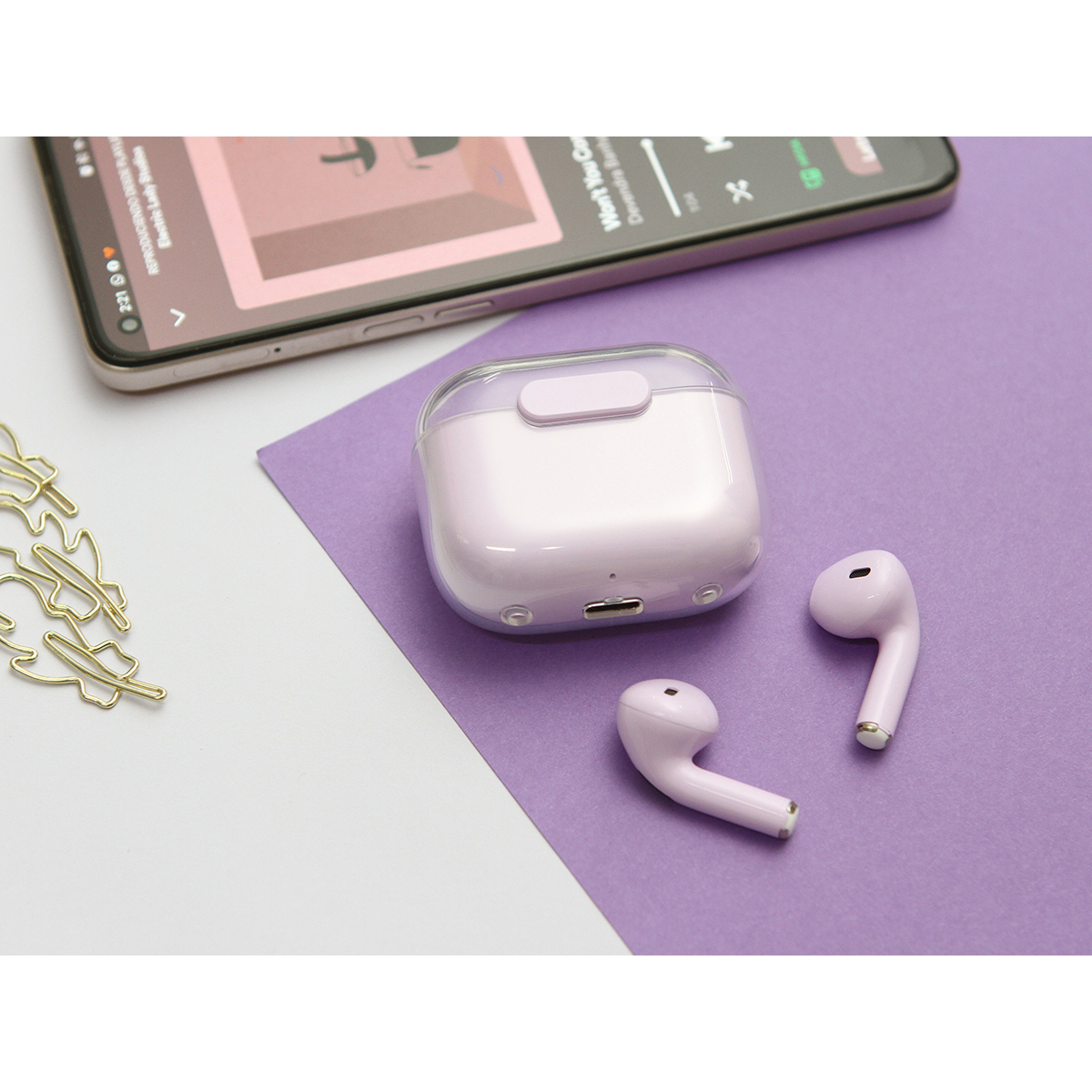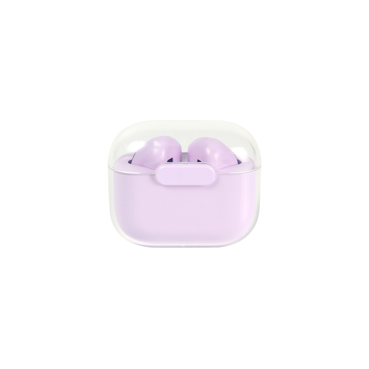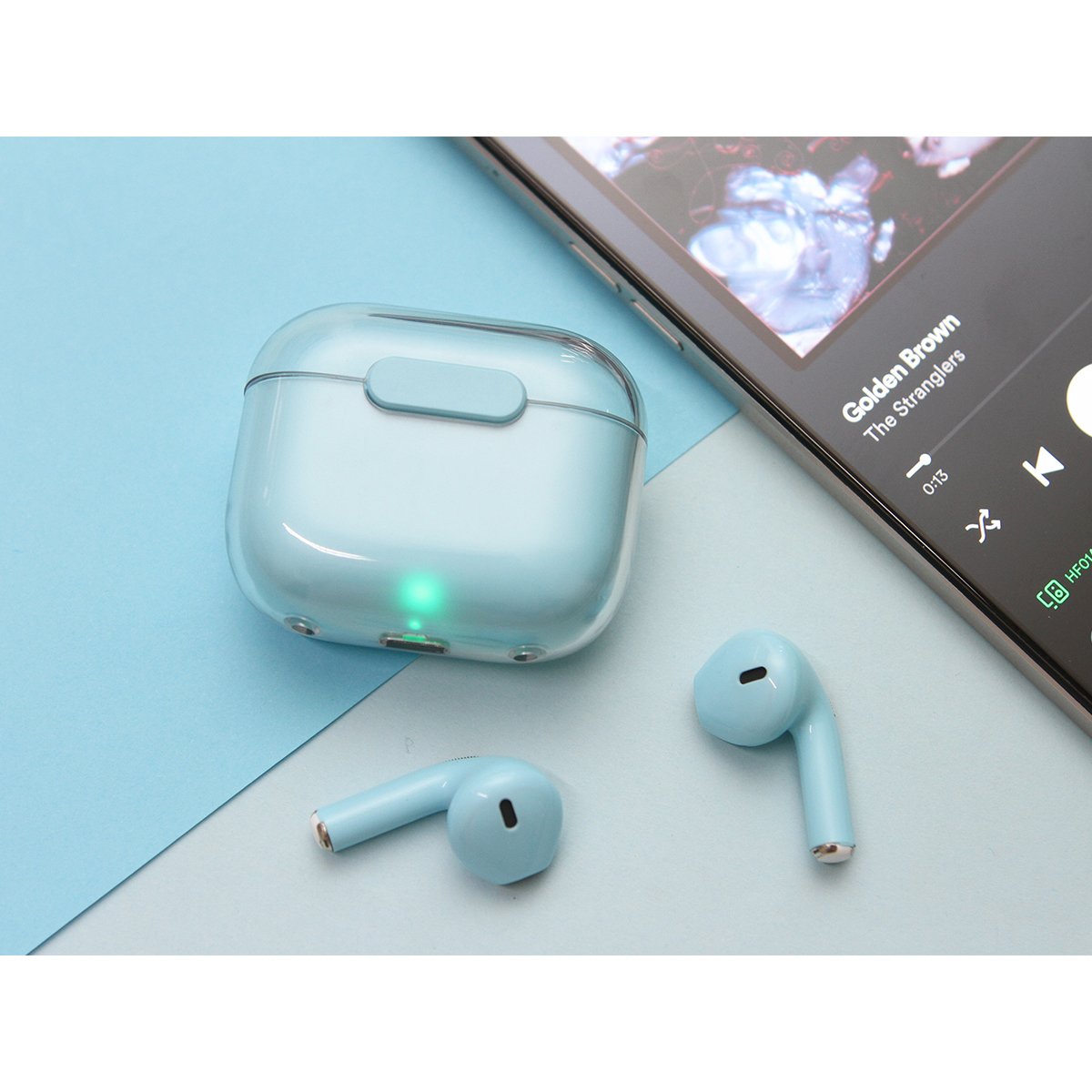 Set de audífonos inalámbricos, con estuche de carga. Distancia de transmisión de 10 m. Tiempo de reproducción de 4 a 5 horas. Puerto de carga tipo-C. Capacidad de batería de estuche de 250 mAh y de los audífonos de 30 mAh.