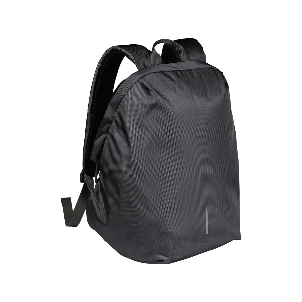 Backpack fabricada en poliéster reciclado (RPET) repelente al agua, con compartimento acolchado para laptop de 15.6″, bolsillo frontal y bolsillo oculto, manga para trolley en la parte trasera para colocarla en el equipaje, con un asa en la parte superior. Es una opción práctica y ecológica para llevar tus pertenencias de manera organizada y protegida.El RPET es un material resistente y duradero que puede soportar el uso diario y el desgaste, lo que lo hace ideal para productos textiles. Además es sostenible porque utilizan materiales reciclados en su fabricación, lo que reduce la cantidad de residuos y disminuye el impacto ambiental.