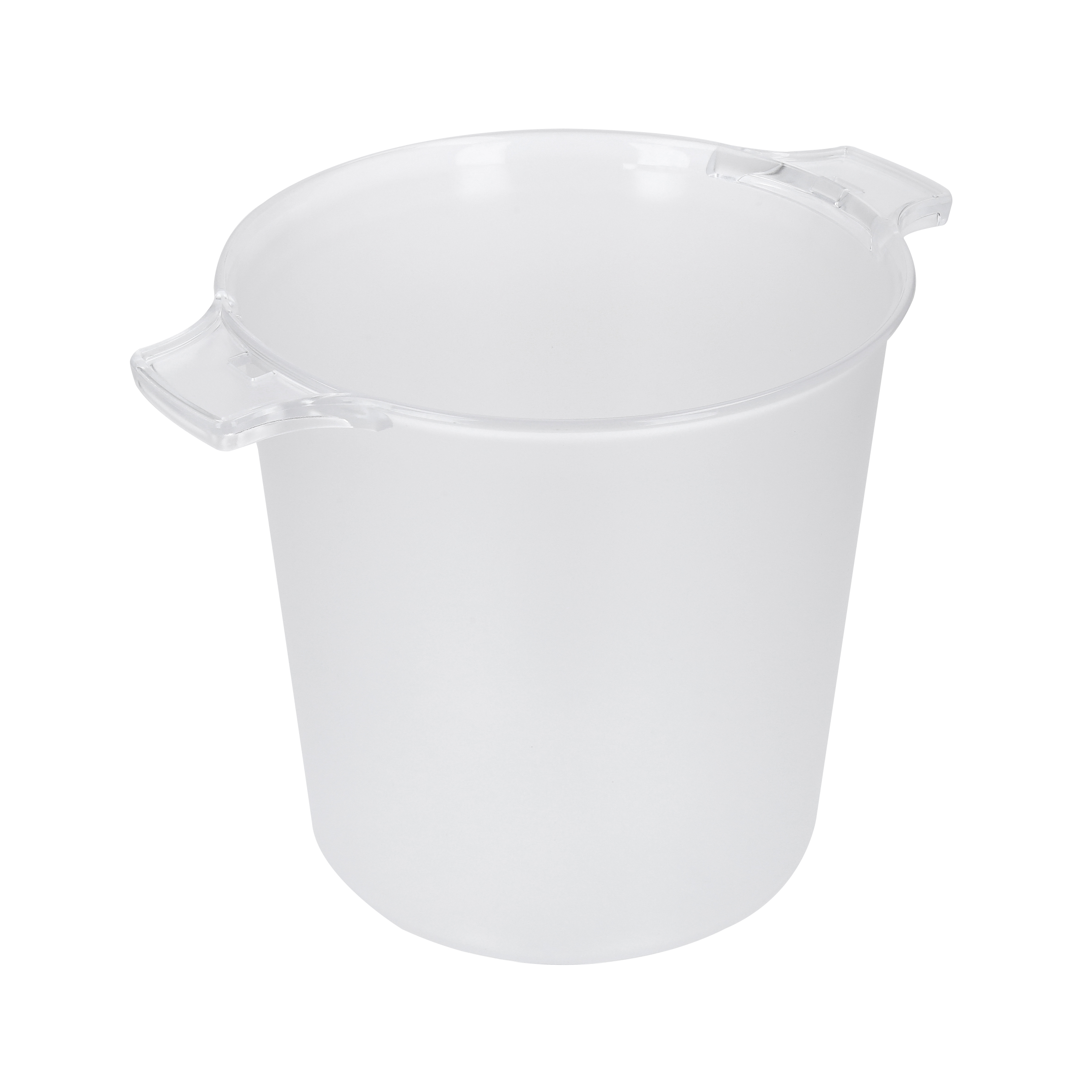 Hielera circular de acrílico con doble asa y capacidad para 5 litros.