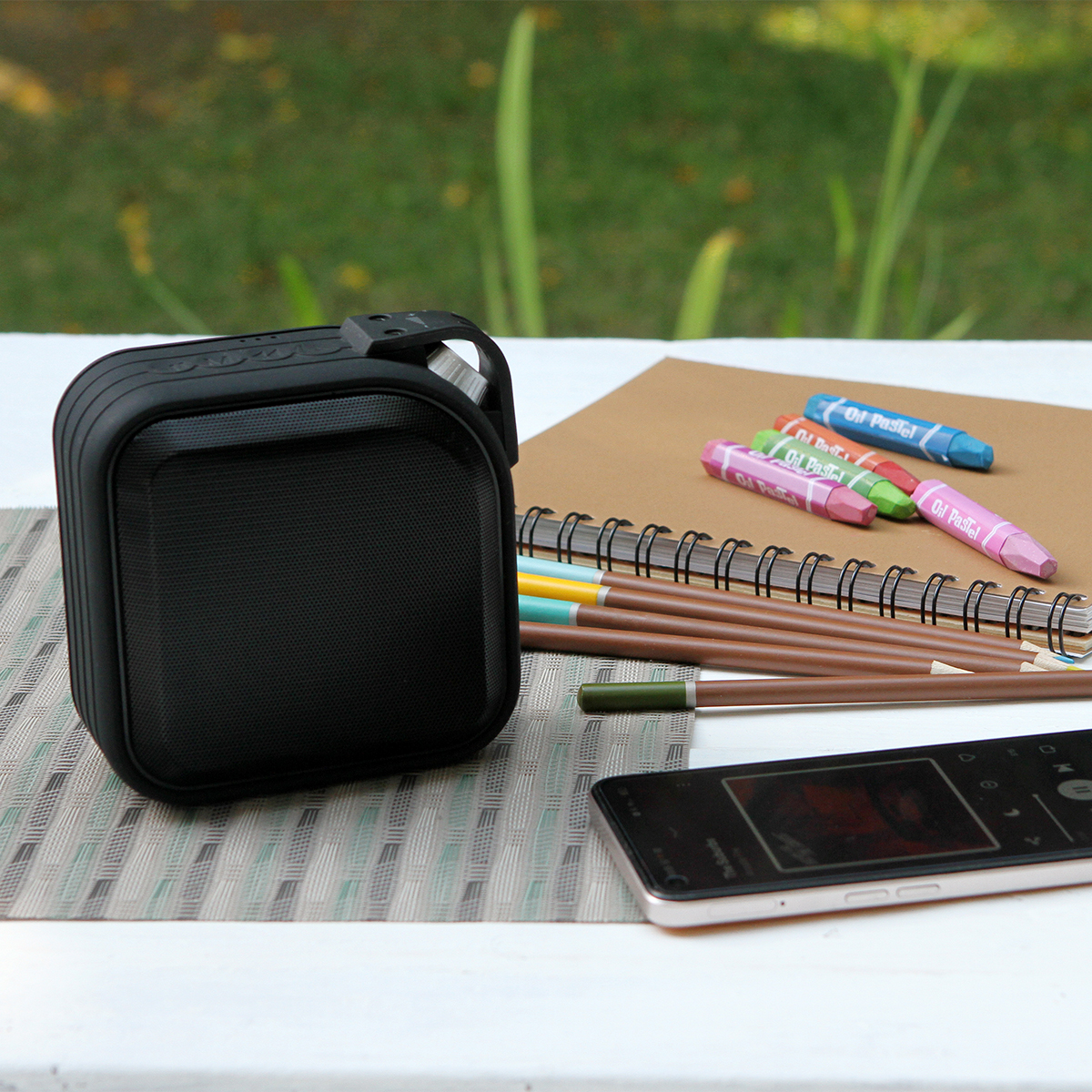 Bocina bluetooth de alta potencia con radio FM, moldeado exterior de silicona a prueba de agua y cordon para su facil desplazamienro. Cuenta con capacidad de acoplamiento con otra bocina de su mismo tipo, entrada tipo C, ranura de tarjeta TF y conexión con cable auxiliar.Manejo de llamadas, ajuste de volumen e indicador luminoso. Potencia de altavoz 1*15W. Incluye cable auxiliar, cable tipo C, cordón y caja individual.