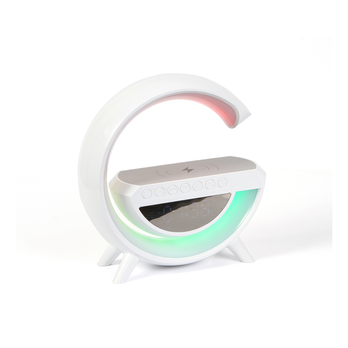 Bocina inalámbrica con diseño «G» es un dispositivo multifuncional que combina estilo y utilidad en un solo producto. Su diseño elegante y moderno, no solo ofrece un aspecto atractivo, sino que también integra diversas funciones para mejorar tu experiencia diaria. Incluye una lámpara incorporada que agrega un toque de iluminación ambiental a su espacio, reloj integrado en la bocina que te permite tener siempre a la vista la hora actual, brindándote una herramienta práctica y funcional para tu día a día y base de carga inalámbrica QI. Incluye caja de cartón individual y cable USB.