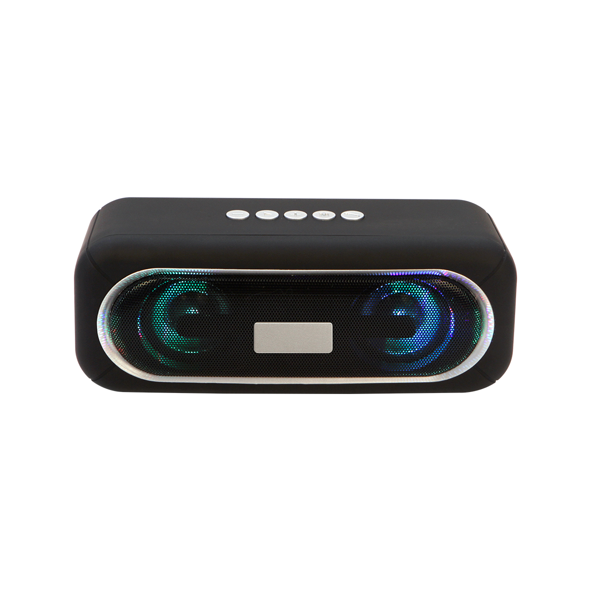 Bocina Bluetooth inalámbrica fabricada en plástico, con radio FM, con 2 altavoces, 6W de potencia, entrada para USB, con función de manos libres, batería integrada de iones de litio con capacidad de 1,200 mAh, cable de audio de 3,5 a 3,5 mm y ranura para tarjeta TF. Incluye cable de carga USB a micro USB y caja de cartón individual.