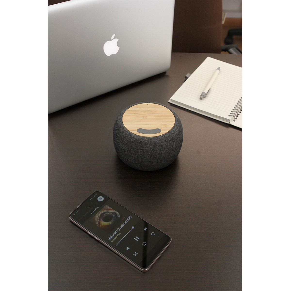 Bocina bluetooth forrada en tela la cual proporciona una protección adicional contra golpes y arañazos, la parte superior de la bocina está hecha de bambú que es conocido por su durabilidad y resistencia, una de las características destacadas de la bocina Shamal es su capacidad de carga inalámbrica para dispositivos electrónicos, la bocina carga utilizando el cable USB el cual ya esta incluido. Incluye caja de cartón individual.