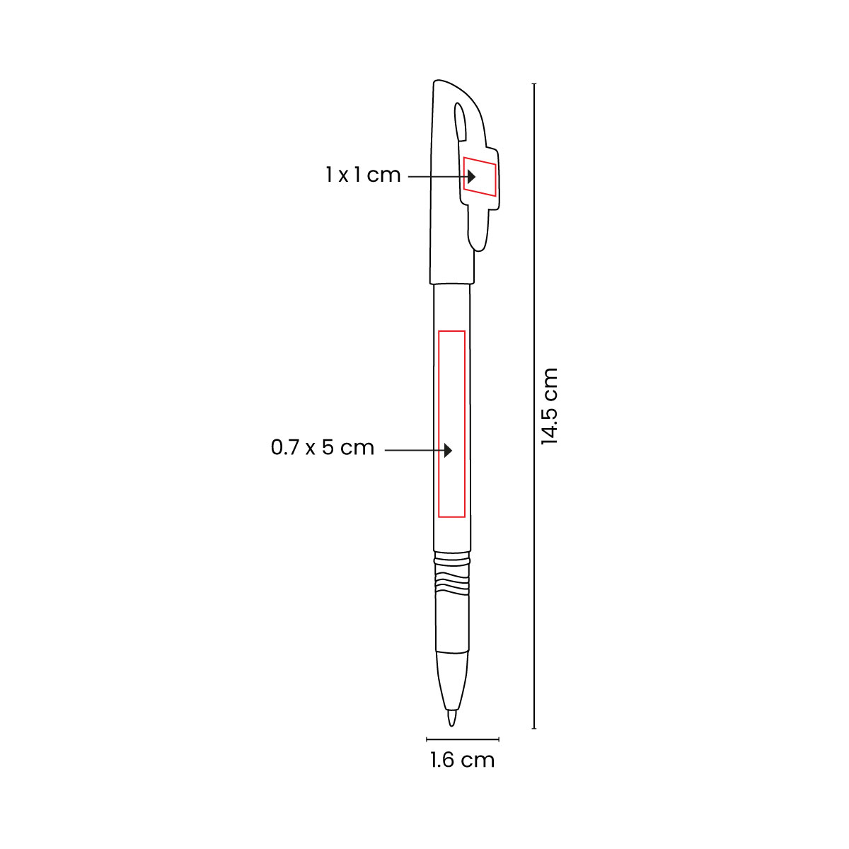 Bolígrafo con tapón. Incluye clip con recuadro para impresión de código QR. Barril con terminado tipo rubber.