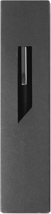 Acero inoxidable. Boligrafo rollerball. Cuerpo laqueado negro mate. Clip y puntera color plata. Tinta negra. Presentación en caja de regalo.