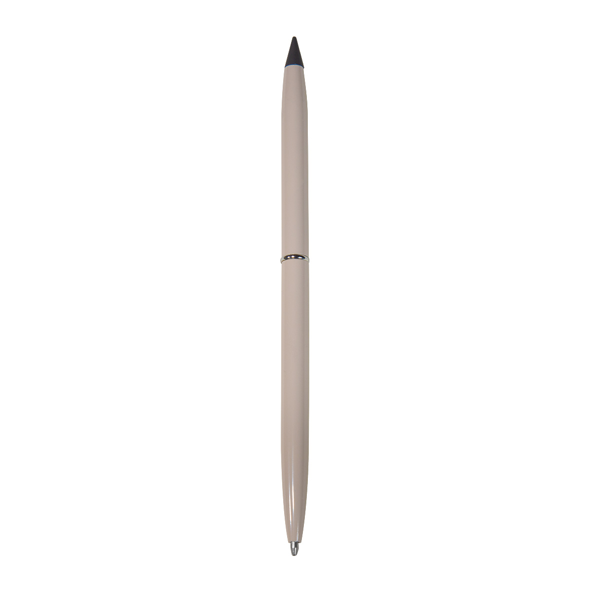 Bolígrafo con función dual, con una punta infinita tipo lápiz. Mecanismo twist. Destaca su peso ligero y su perfil delgado.