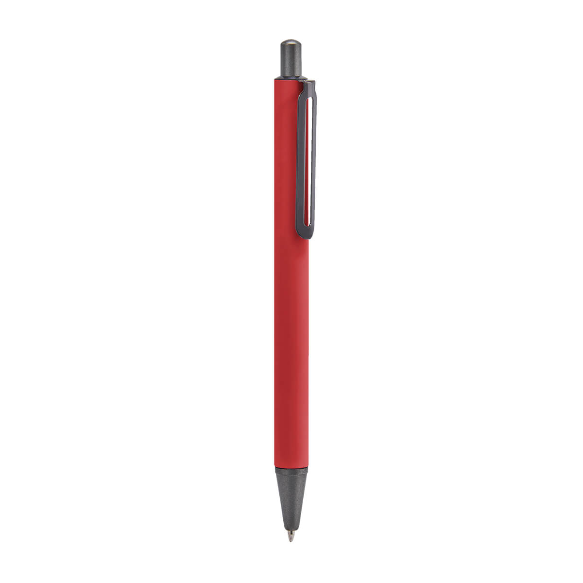 Bolígrafo metálico con terminado mate y clip suajado. Mecanismo pulsador. Incluye funda.