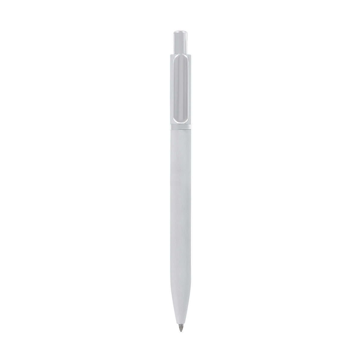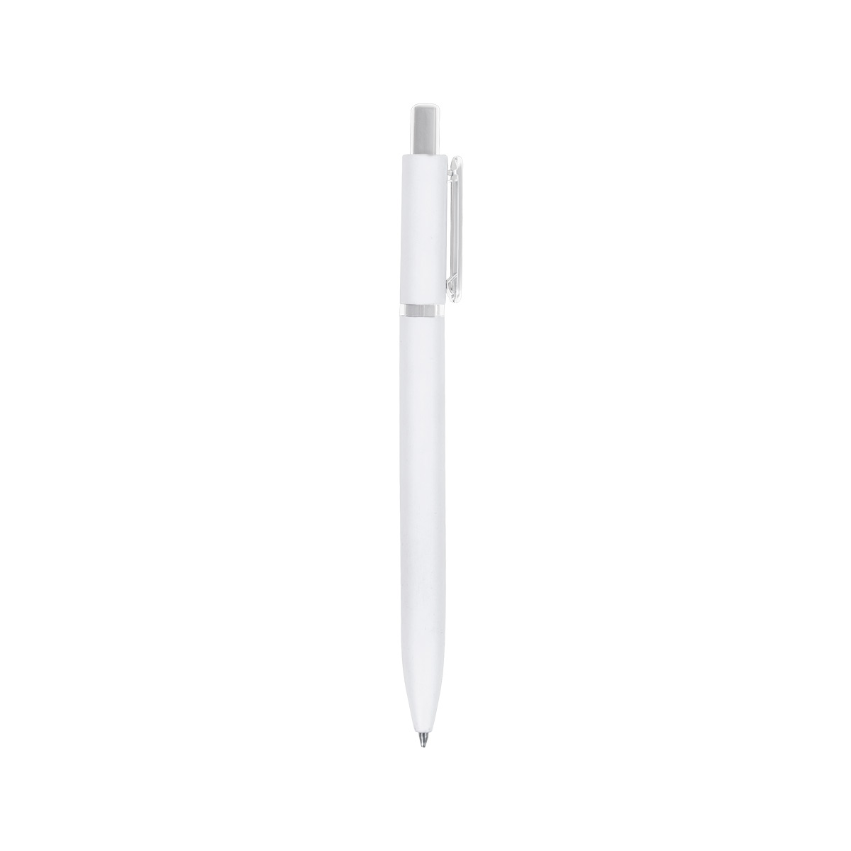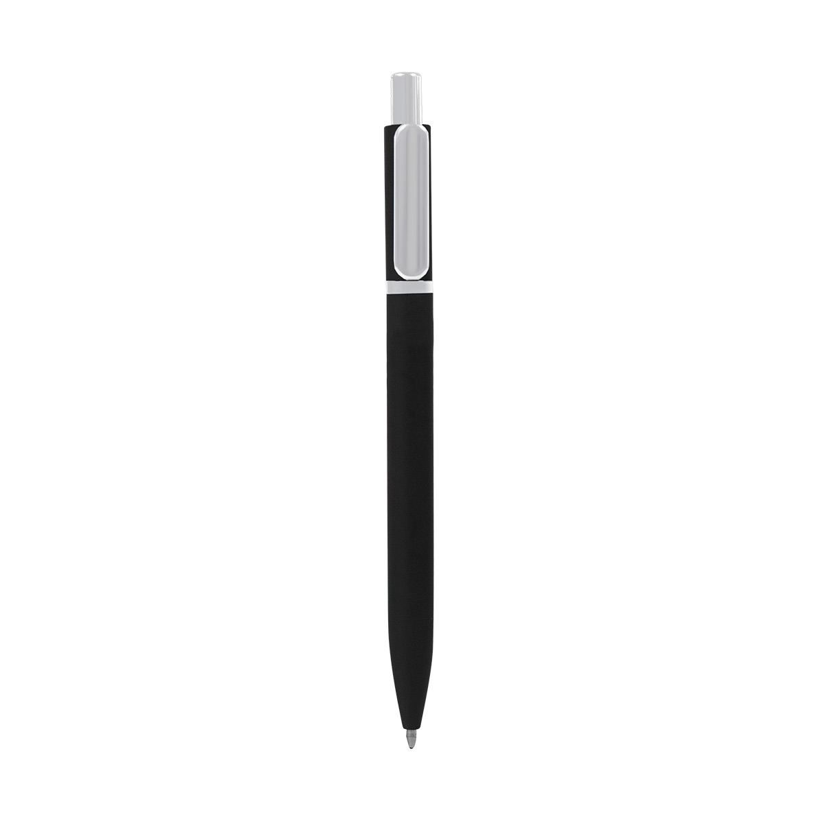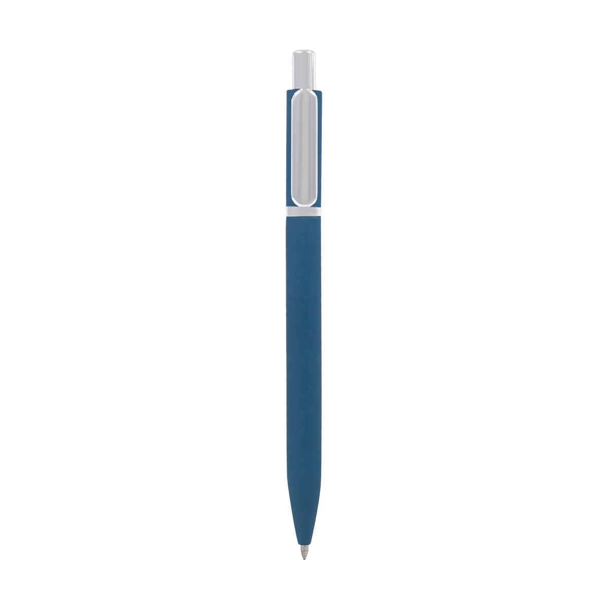 Bolígrafo con terminado rubber y clip metalizado. Mecanismo pulsador.