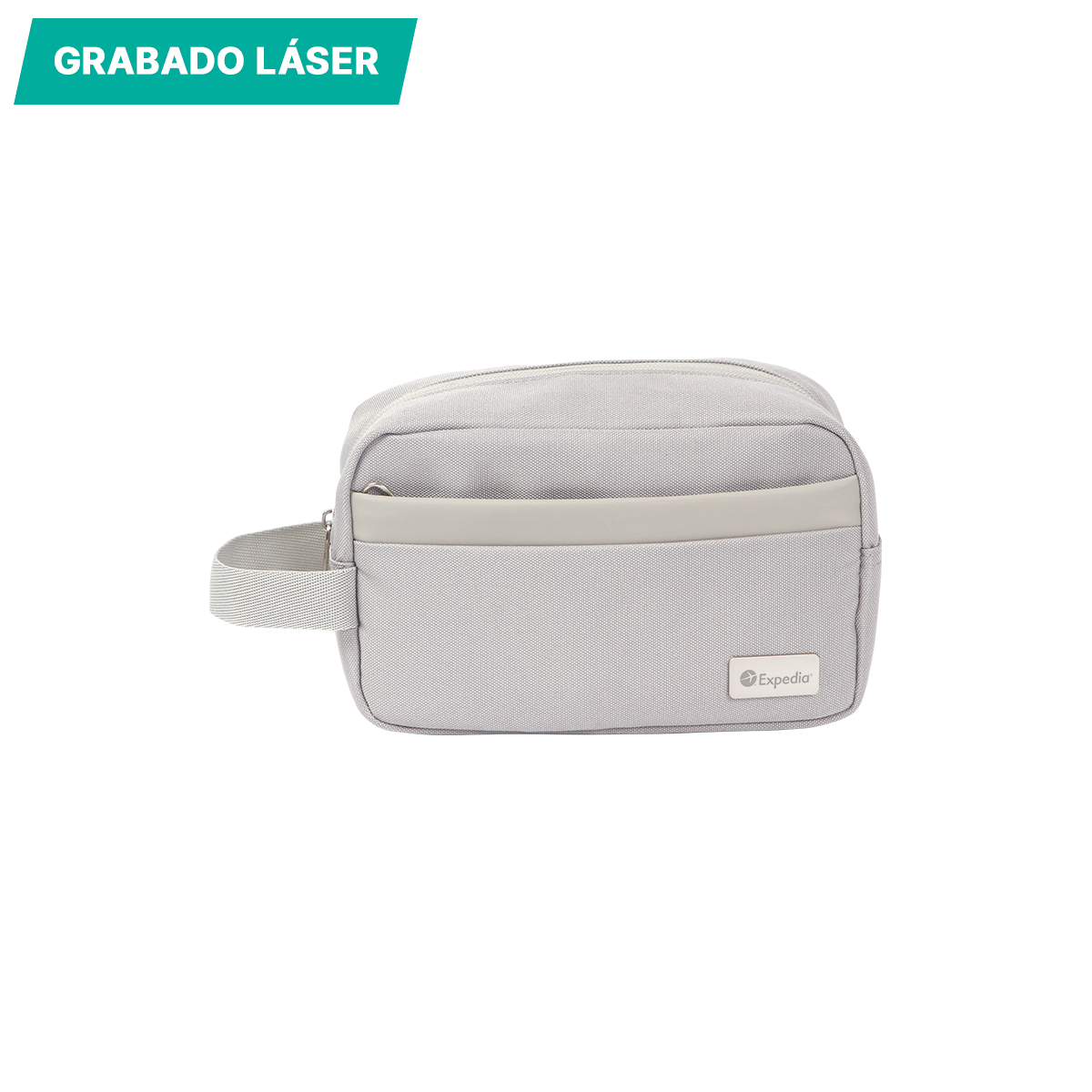 Bolsa cosmetiquera premium, fabricado en poliéster y cuero sintético (PU) 900D, con asa para fácil transportación y compartimento delantero con cierre. acolchado completo de espuma y placa metálica para imprimir logotipo. Es un accesorio práctico y elegante que ayuda a organizar y transportar los productos de belleza de manera cómoda y segura.