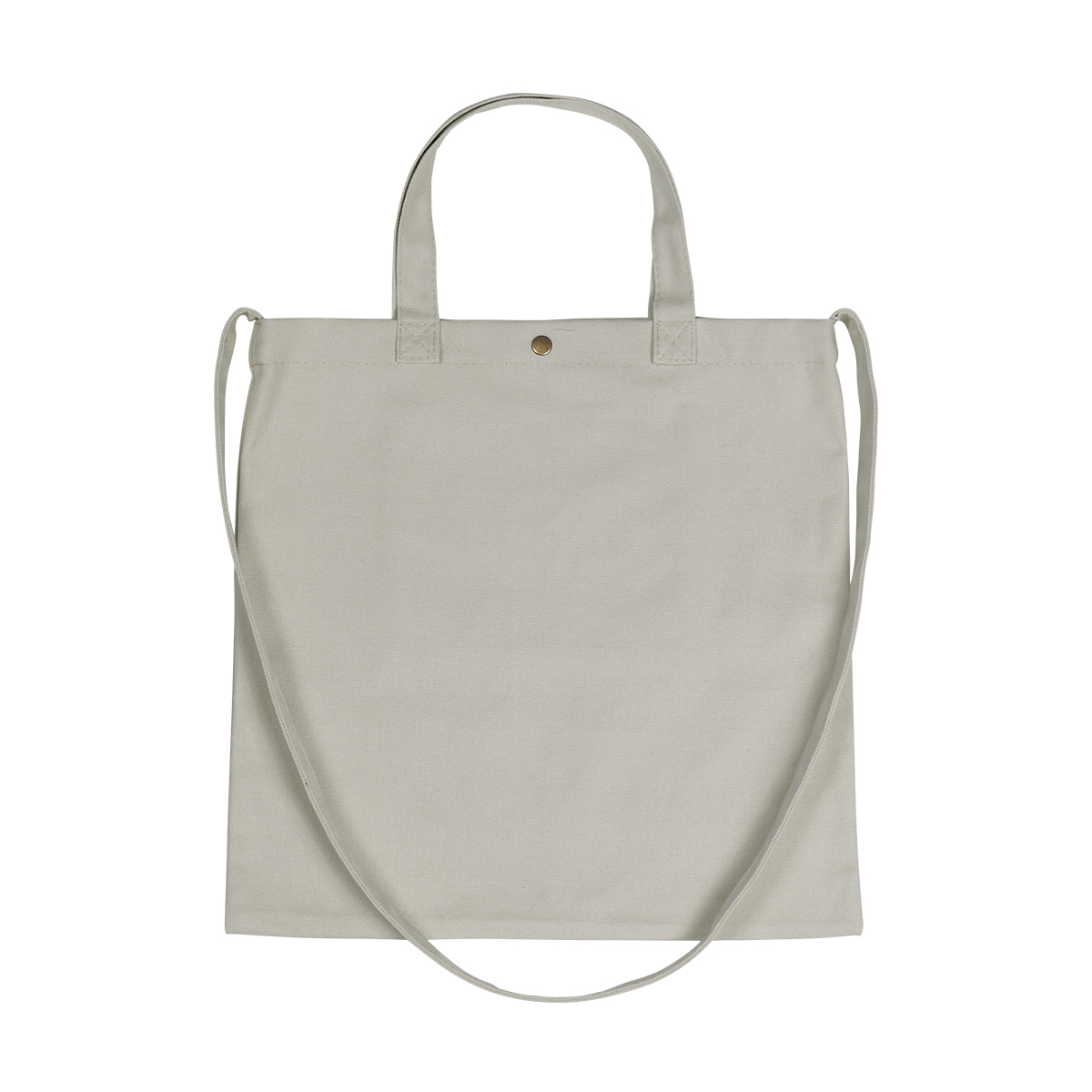 Bolsa de algodón de 12 onzas, con asas reforzadas y correa para el hombro. Esta bolsa te permite llevarla de manera que sea mas cómoda para ti, ya sea en el hombro o en el brazo. Cuenta con un broche metálico para mayor seguridad