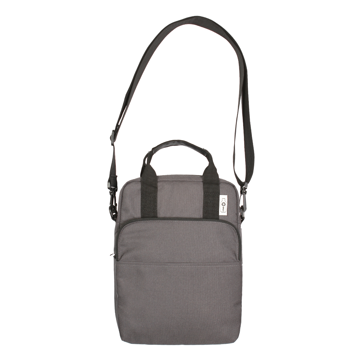Bolsa para laptop fabricado en poliéster y RPET. cuenta con dos compartimentos, correa de hombro y doble asa.