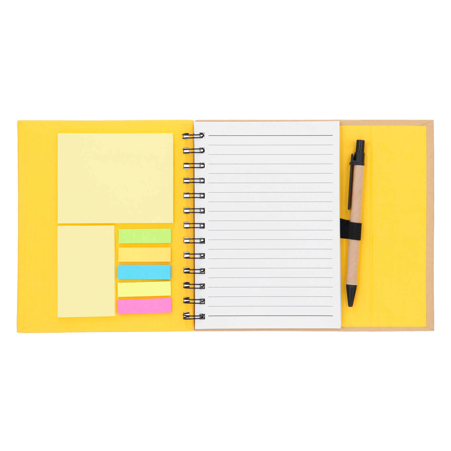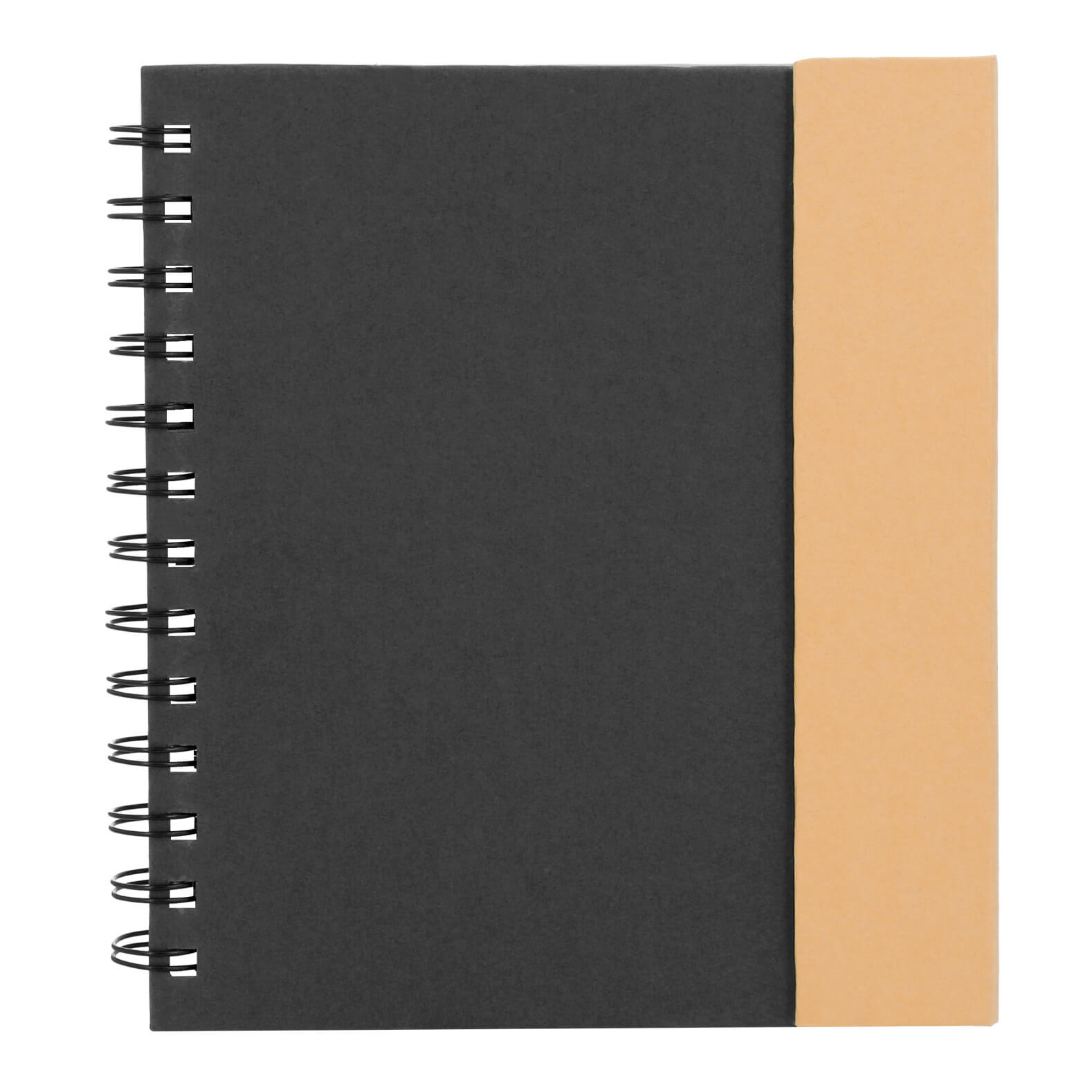 Libreta ecológica de cartón con espiral, cierre magnético. Incluye 5 líneas de banderas adhesivas y dos blocks de notas rectangulares, 70 hojas rayadas y bolígrafo ecológico de cartón reciclado.