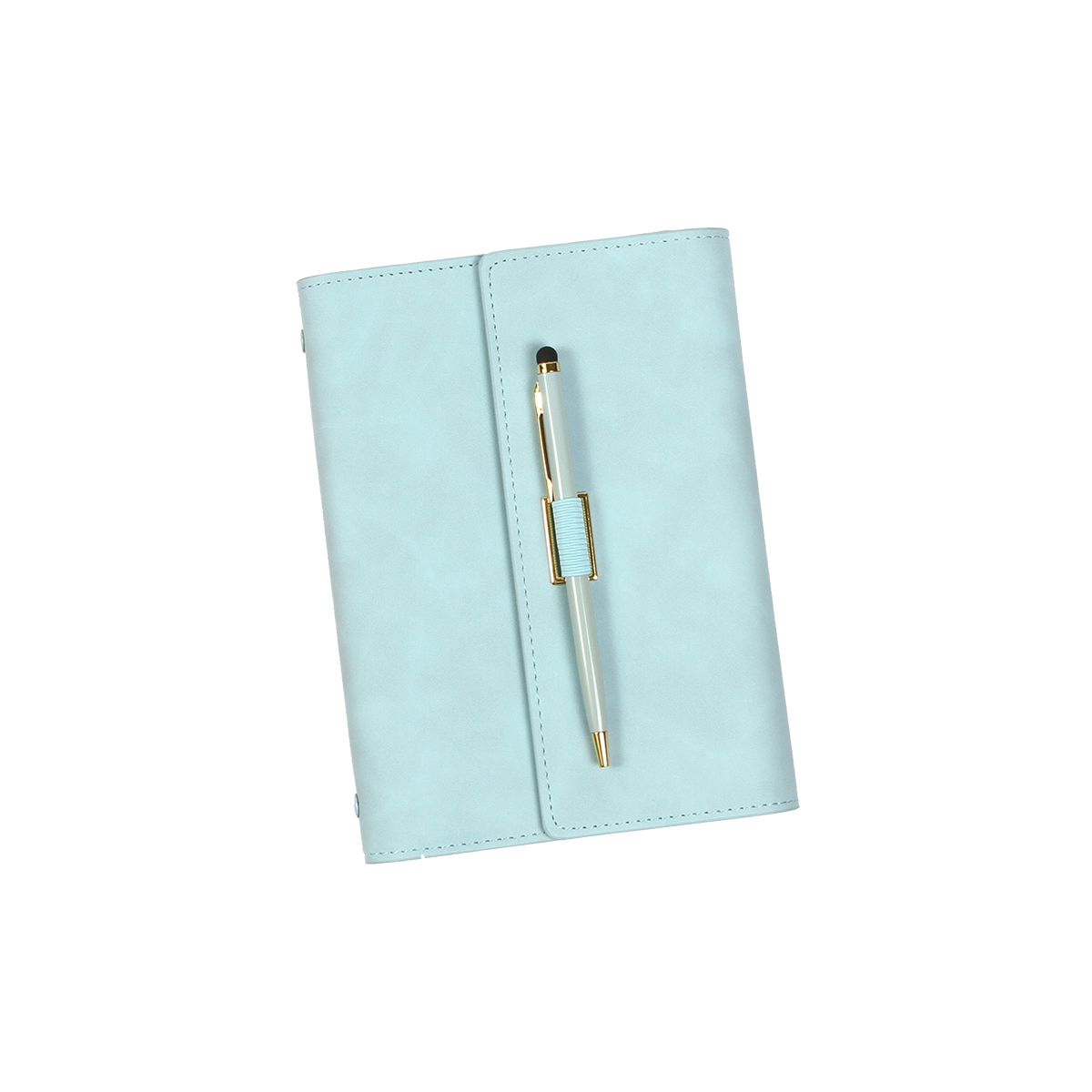Carpeta con exteriores en curpiel de alta calidad, con un diseño elegante y duradero. En su interior cuenta con 100 hojas removibles, aros en color dorado, espacio para tarjetas, documentos, y bolígrafo metálico a juego que ayuda a cerrar la carpeta. Incluye caja de cartón individual. Con este set de carpeta de curpiel y bolígrafo metálico a juego, tendrás todo lo necesario para organizarte y escribir de manera elegante.