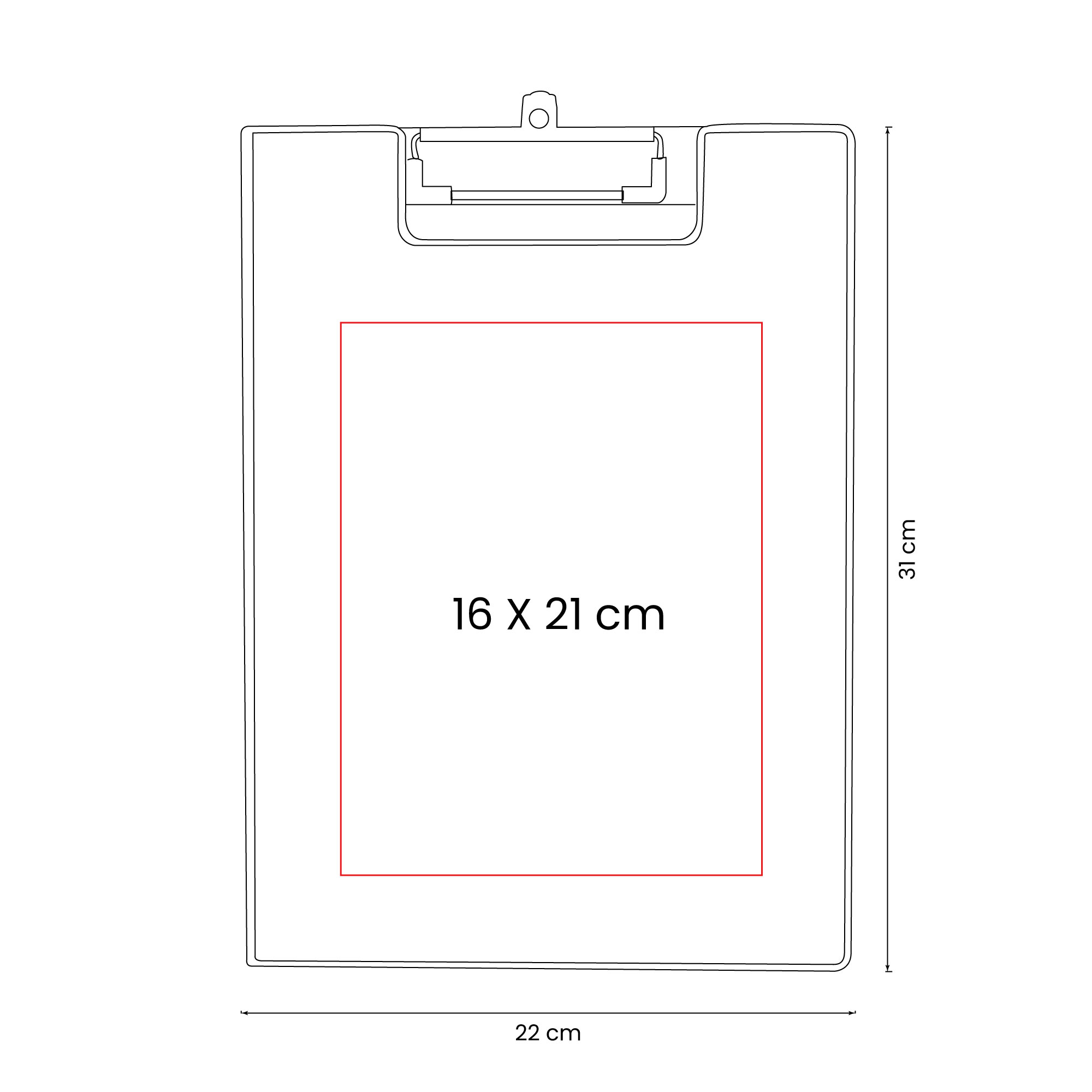 Carpeta de plástico con clip metálico. Incluye bloc de notas con 20 hojas. Incluye un compartimento plegable para sostener un bolígrafo. Cuenta con una pequeña solapa interna para colocar hojas adicionales o tarjetas de manera ordenada y accesible.