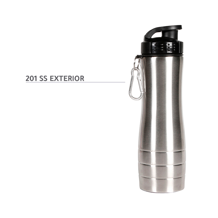 Cilindro de acero inoxidable con tapa de seguridad fabricada en PP y arnés de aluminio, fabricado en materiales de grado alimenticio, no usar en microondas, capacidad de 750 ml (25 oz). Incluye caja de cartón individual.