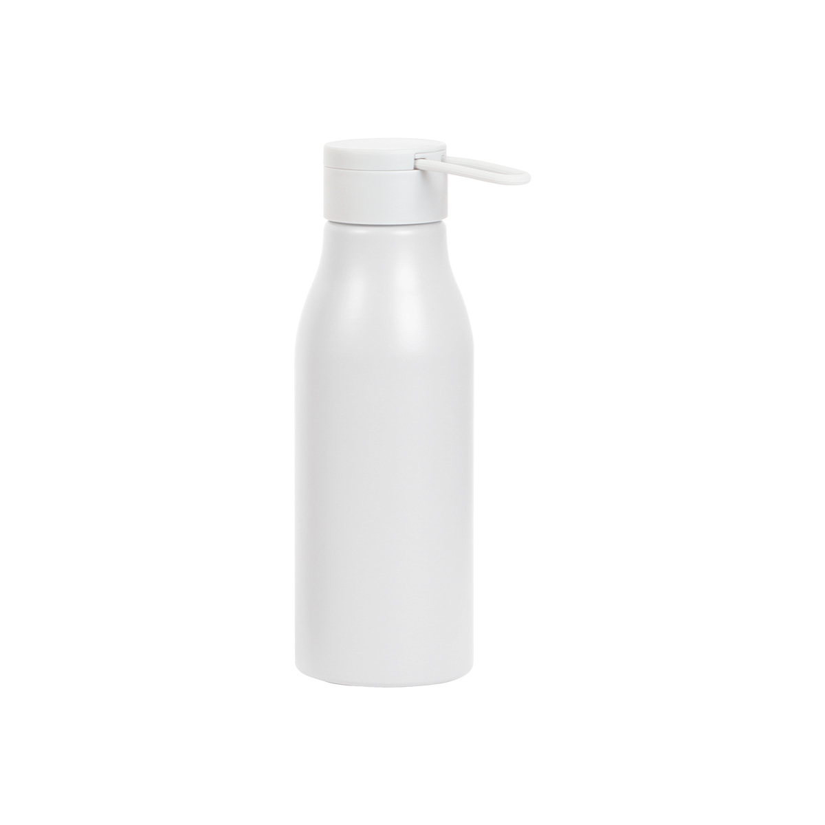 Cilindro de aluminio de 22 oz con revestimiento de color en el exterior, libre de BPA, tapa de plástico con tira de transporte elástica para llevarlo a todos lados.