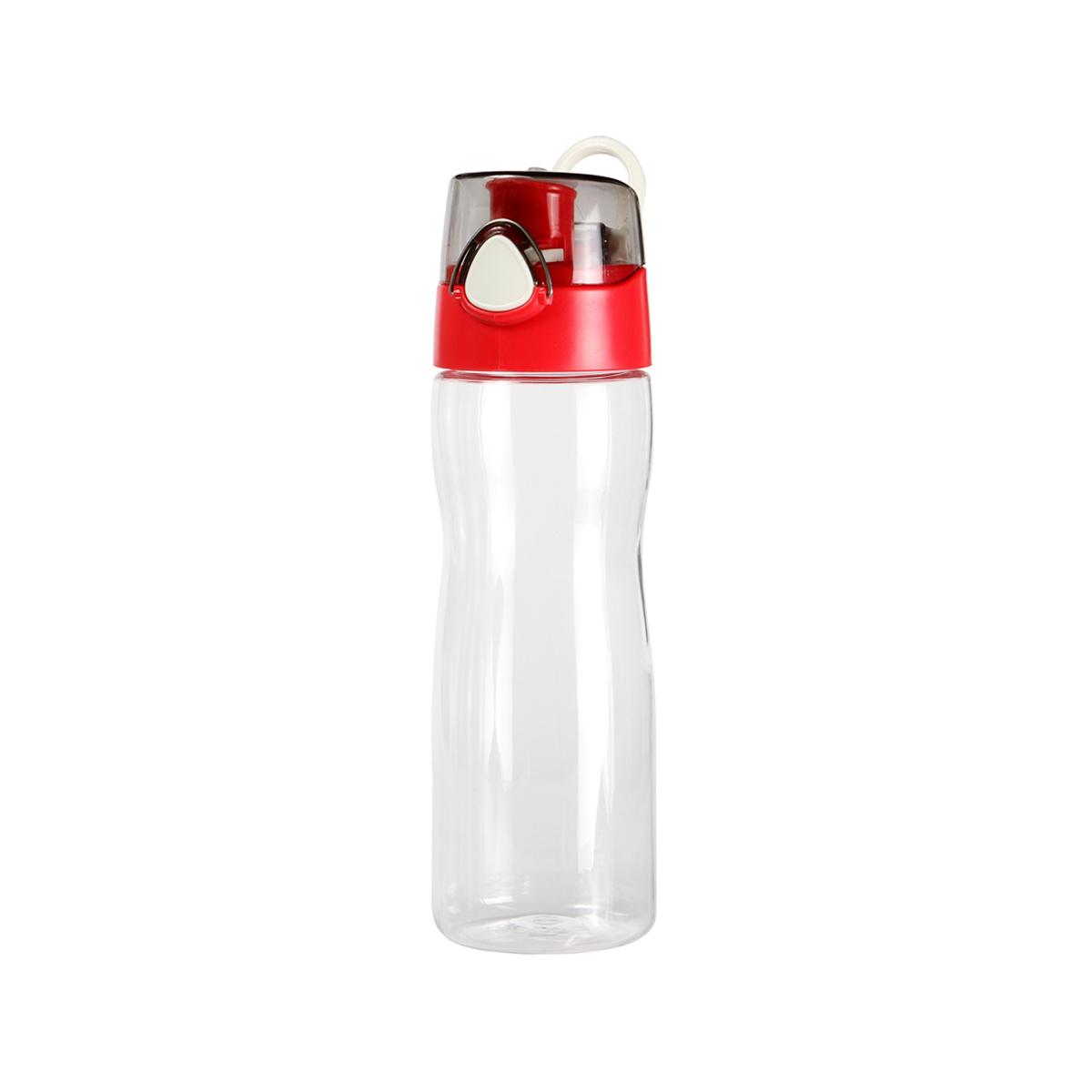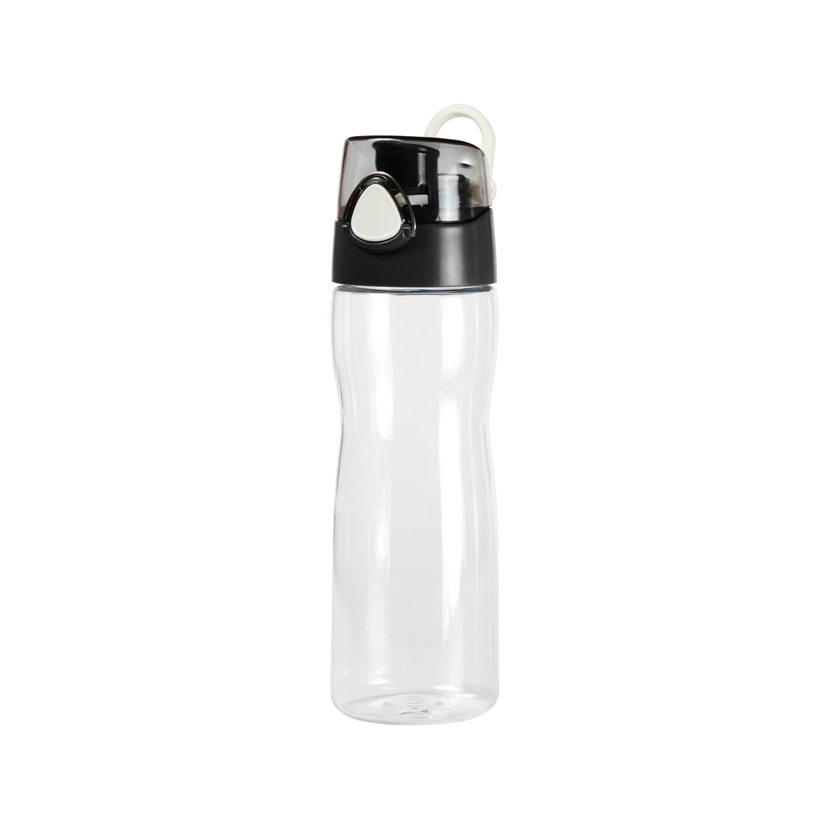 Cilindro transparente de Tritan con arnés, tapa con botón de seguridad fabricada en plástico ABS y silicón, capacidad de 650 ml (21 oz).