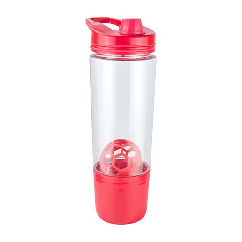 Tapa de rosca con boquilla y asa. Cuenta con compartimento especial en la parte inferior. Incluye separador, agitador y caja individual.