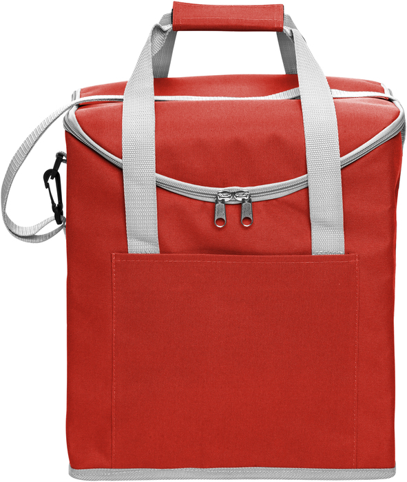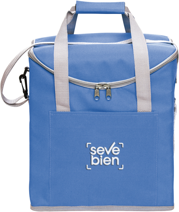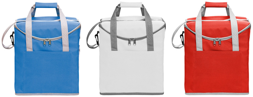 30 x 34 x 19,5 cm. Capacidad 37 litros. Poliéster. 600D Lonchera térmica con recubrimiento interior metalizado. Un bolsillo frontal y dos bolsillos laterales de red. Correa tipo bandolera y dos manijas reforzadas con cierre de velcro. Capacidad hasta 6 botellas de 2,5 litros