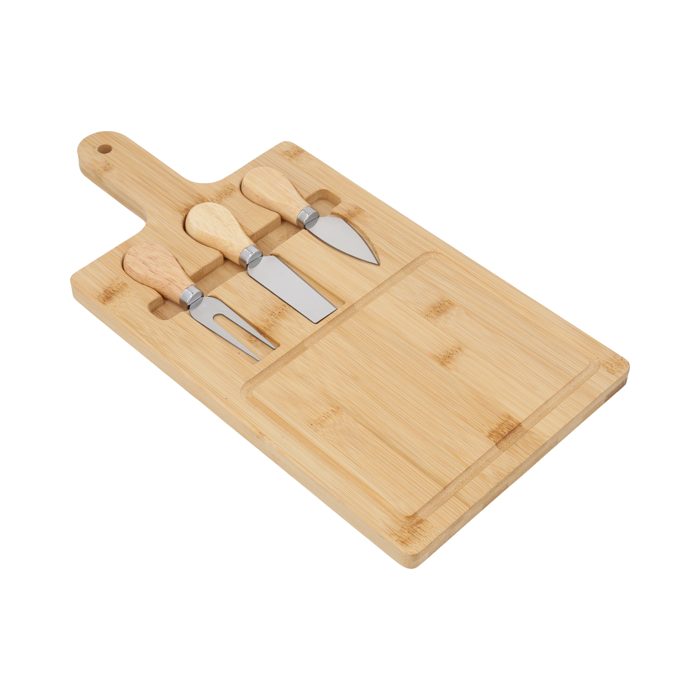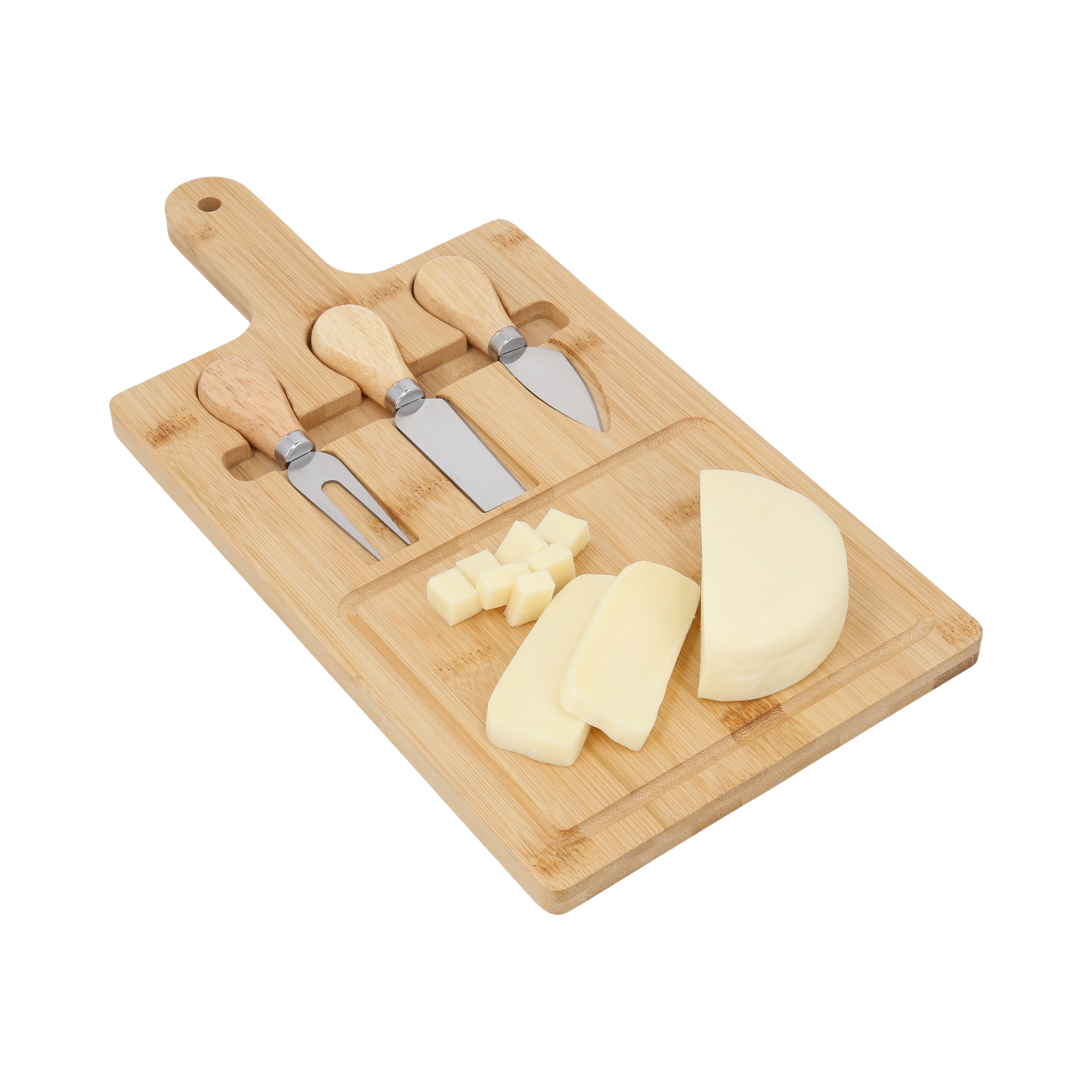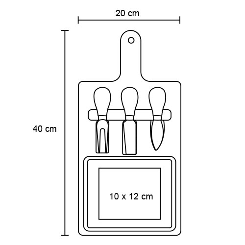 Set de tabla para quesos que incluye, 2 cuchillos y 1 tenedor para quesos.