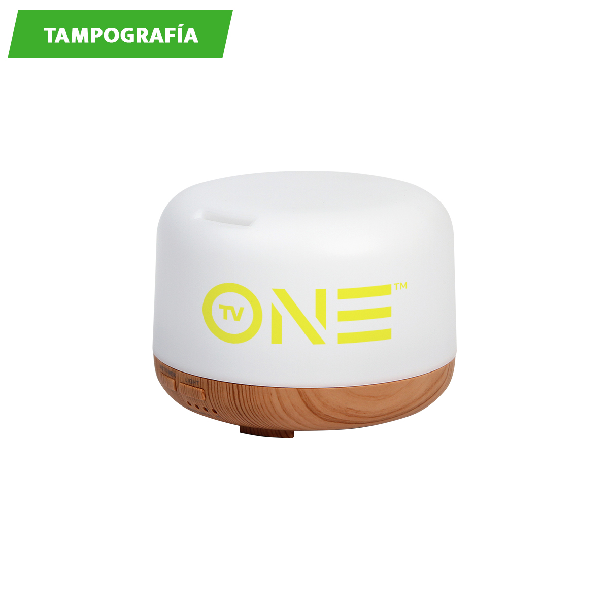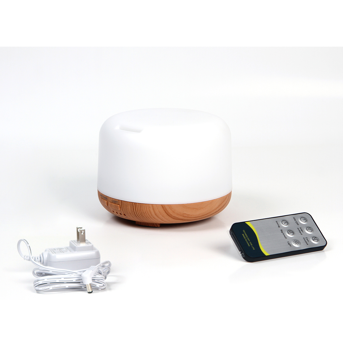 Difusor aromático con detalle de bambú, lámpara LED, programación de ciclos e intensidades de rocío. Ideal para aromaterapia. Capacidad 300 ml. Carga a través de adaptador de corriente. Incluye caja de cartón individual.