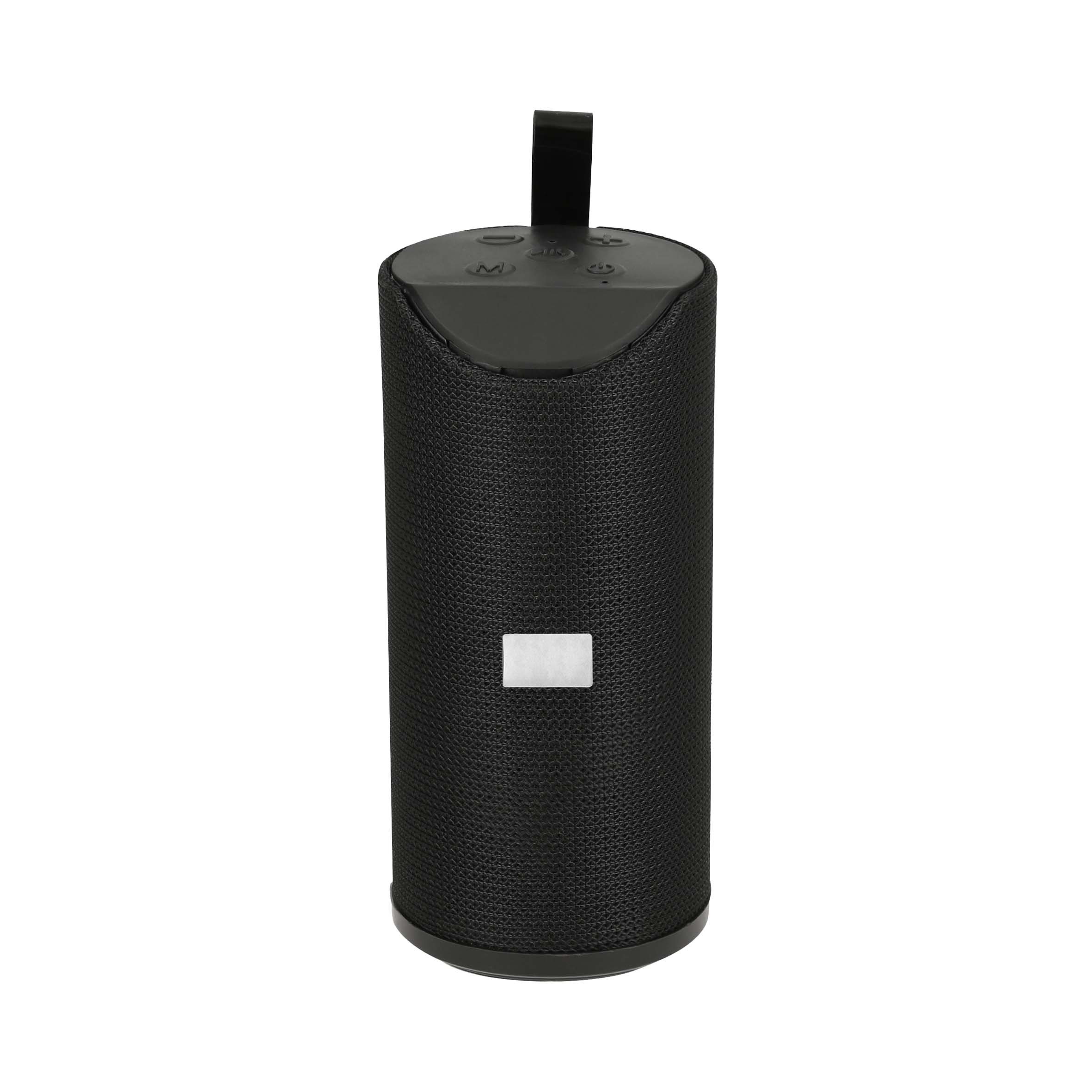 Bocina inalámbrica con correa de plástico, función de bluetooth, entradas USB (carga), entrada auxiliar para audio, entrada micro USB y micro SD.