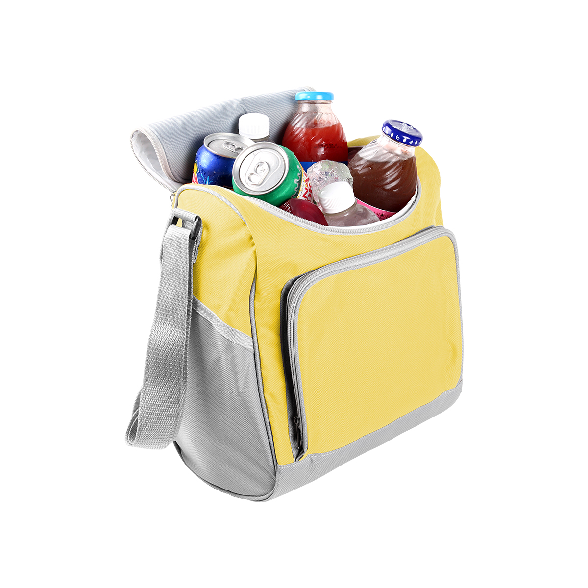 Hielera fabricada en nylon resistente, lo que le confiere durabilidad y resistencia al desgaste, cuenta con 2 compartimientos, un amplio compartimento principal con capacidad para almacenar varias latas o botellas, y un compartimiento en la parte frontal, equipada con una correa de hombro ajustable, lo que te permite llevarla de manera cómoda y práctica.