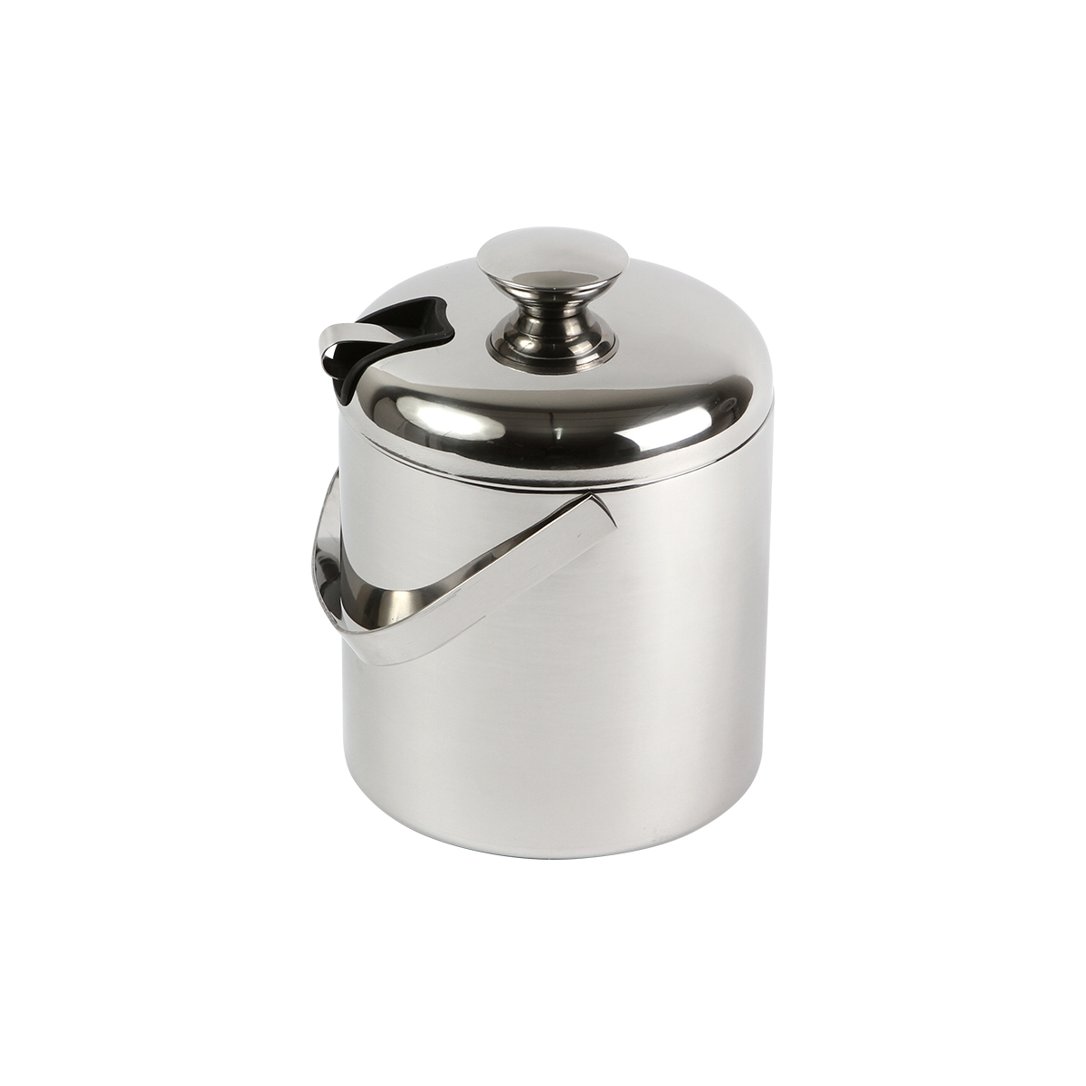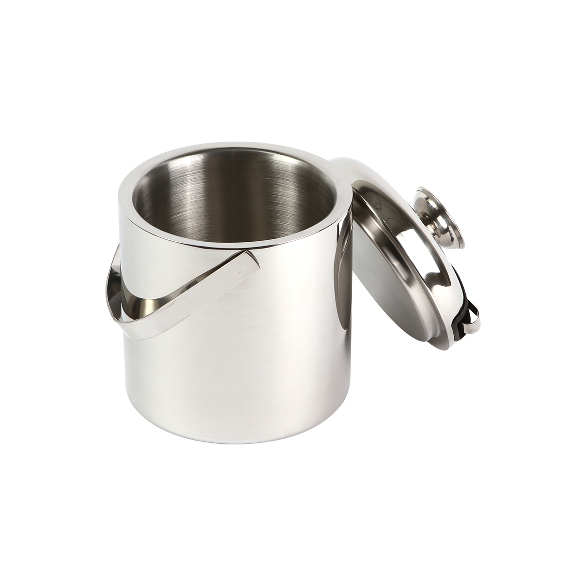 Hielera fabricada en acero inoxidable 304. Capacidad de 1.4 litros, cuenta con asa sujetadora, incluye tapa y pinzas.