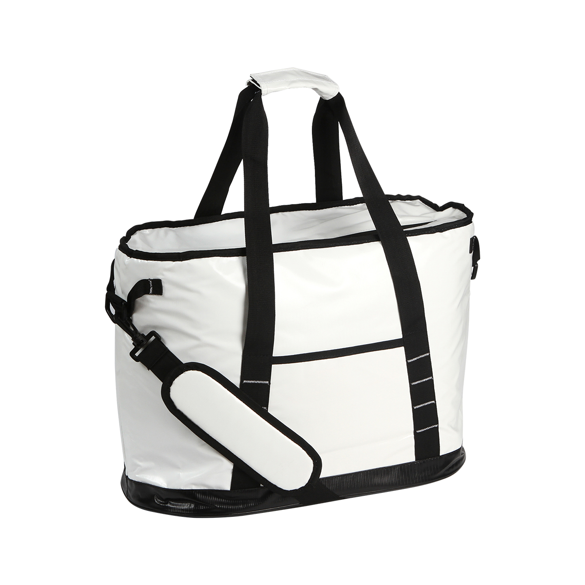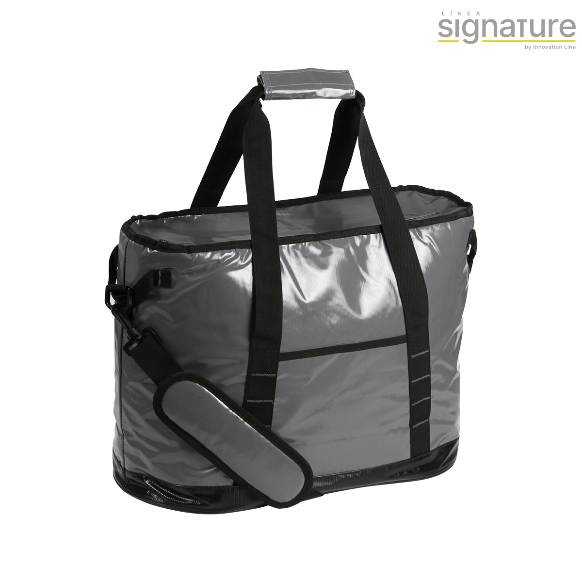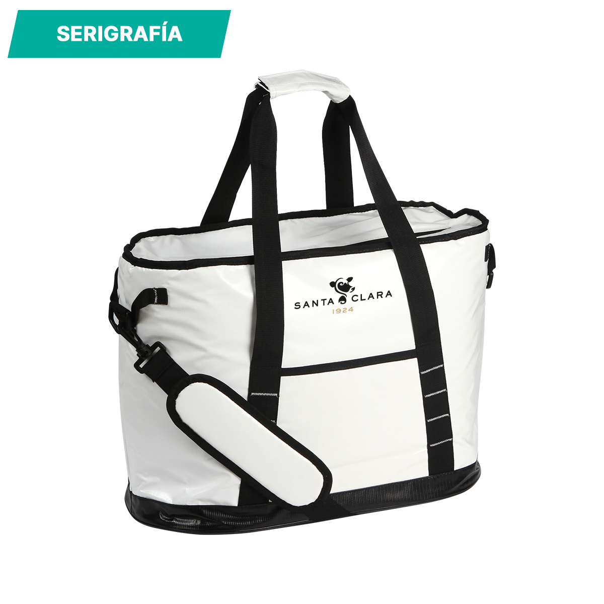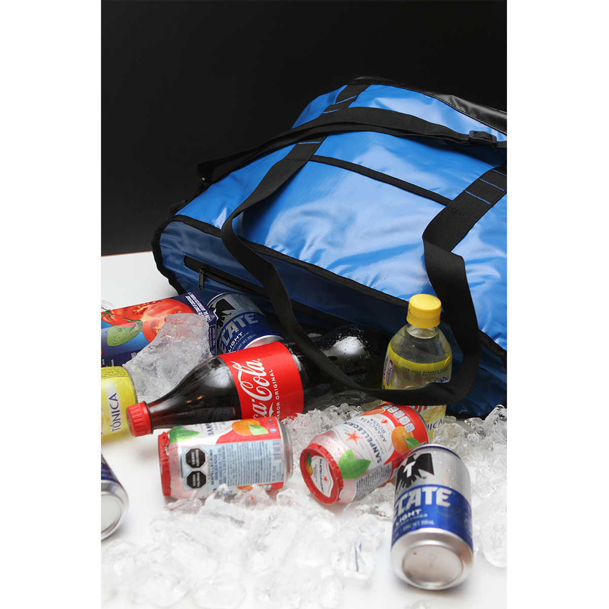 Hielera fabricada en lona alquitranada, polietileno vinil acetato (PEVA) y espuma de polietileno (PE) de 6 mm. Con asas superiores y correa para hombro la cual es desmontable, capacidad para 24 latas (32-35 litros aproximadamente) y resistente al agua, con bolsillo frontal. Con un diseño moderno y versátil, nuestra hielera es perfecta para todas tus salidas al aire libre.