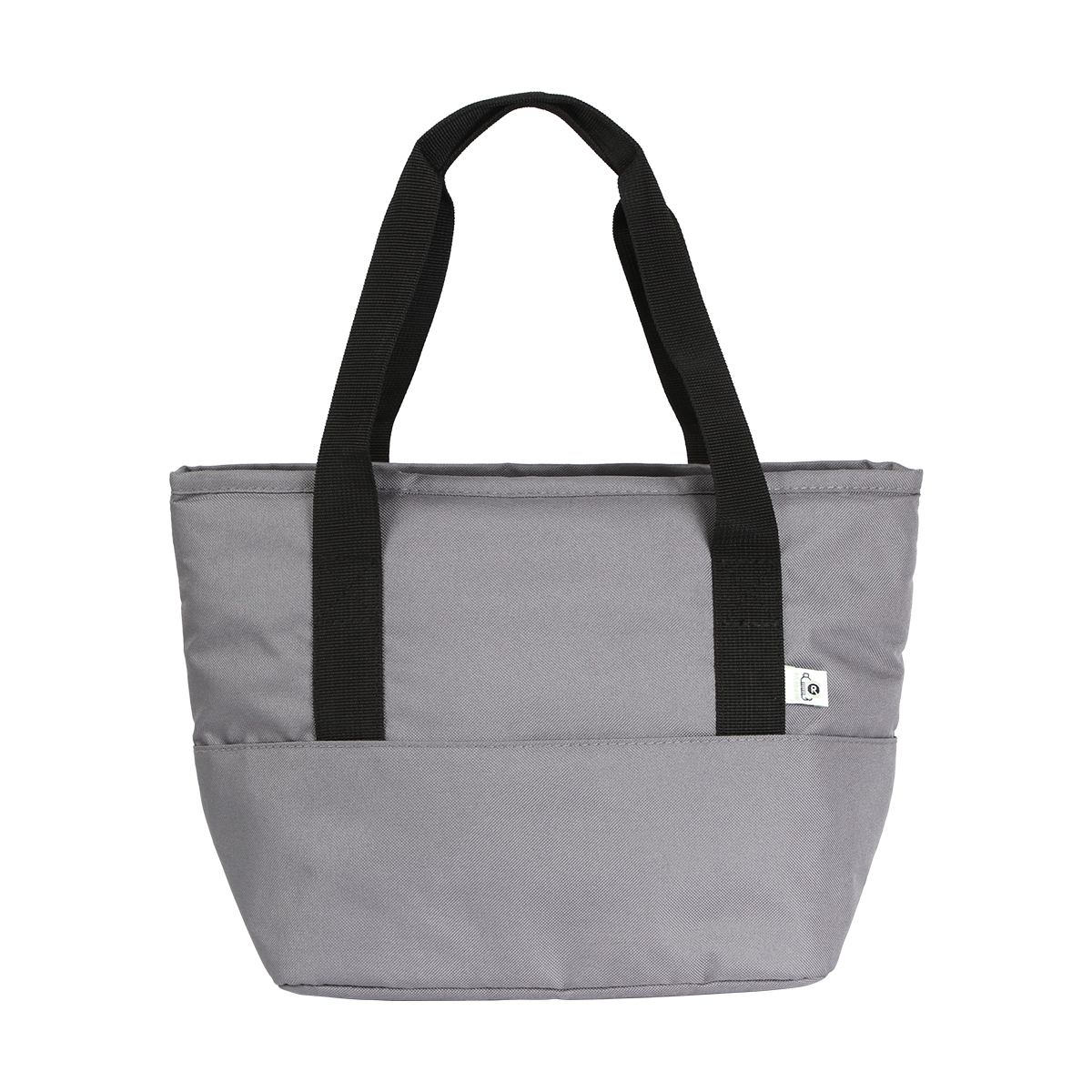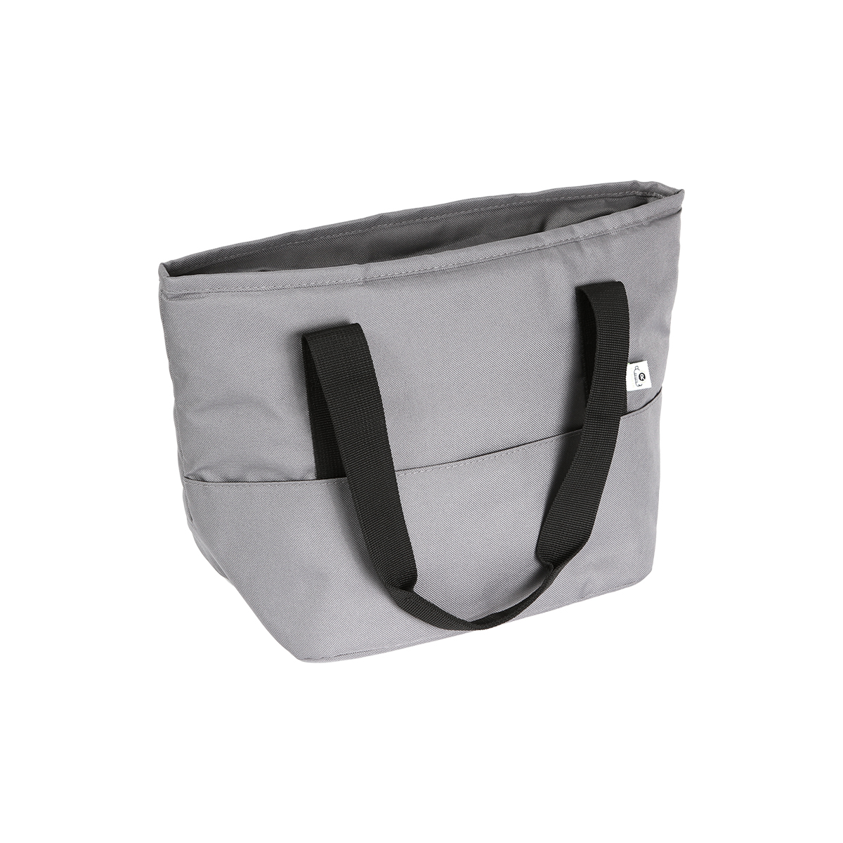 Hielera fabricada en poliéster, con forro de acetato de vinilo y polietileno (PEVA). Con cierre y asa doble.
