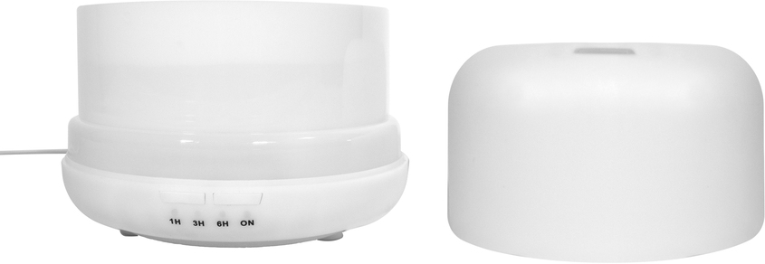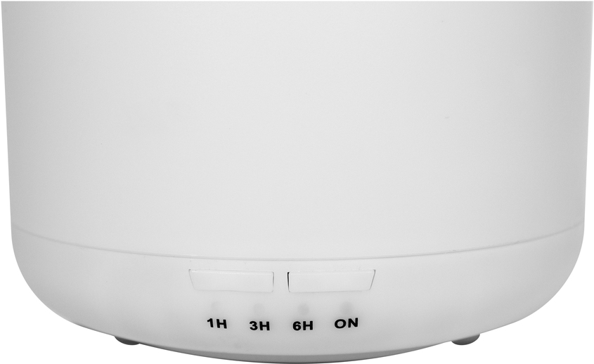 13,4 x 13,4 x 10,2 cm. Plástico ABS. Capacidad 300 ml. Aromatizador de ambiente con 7 tonalidades de luz que se van alternando. Cuenta con un timer (botón) que permite regular el tiempo de salida del vapor (1 hs, 3 hs o 6 hs).