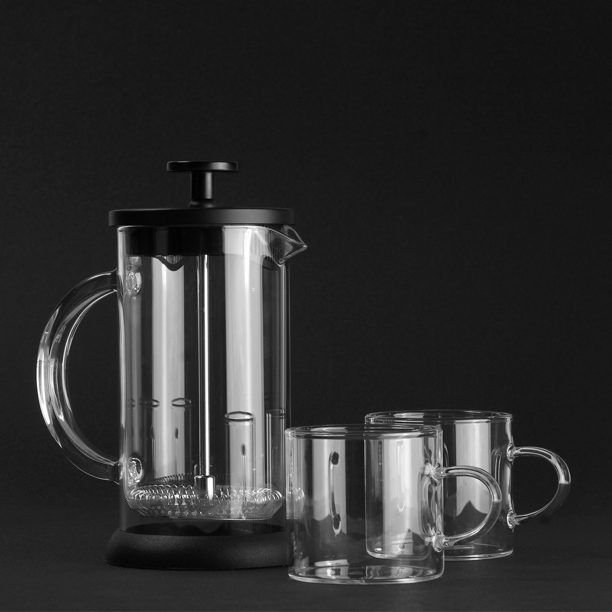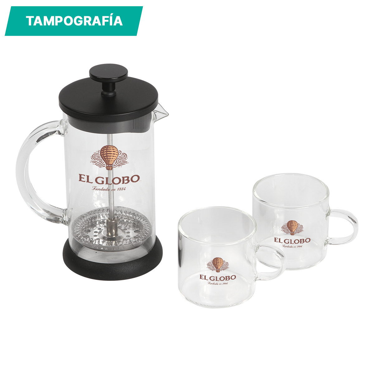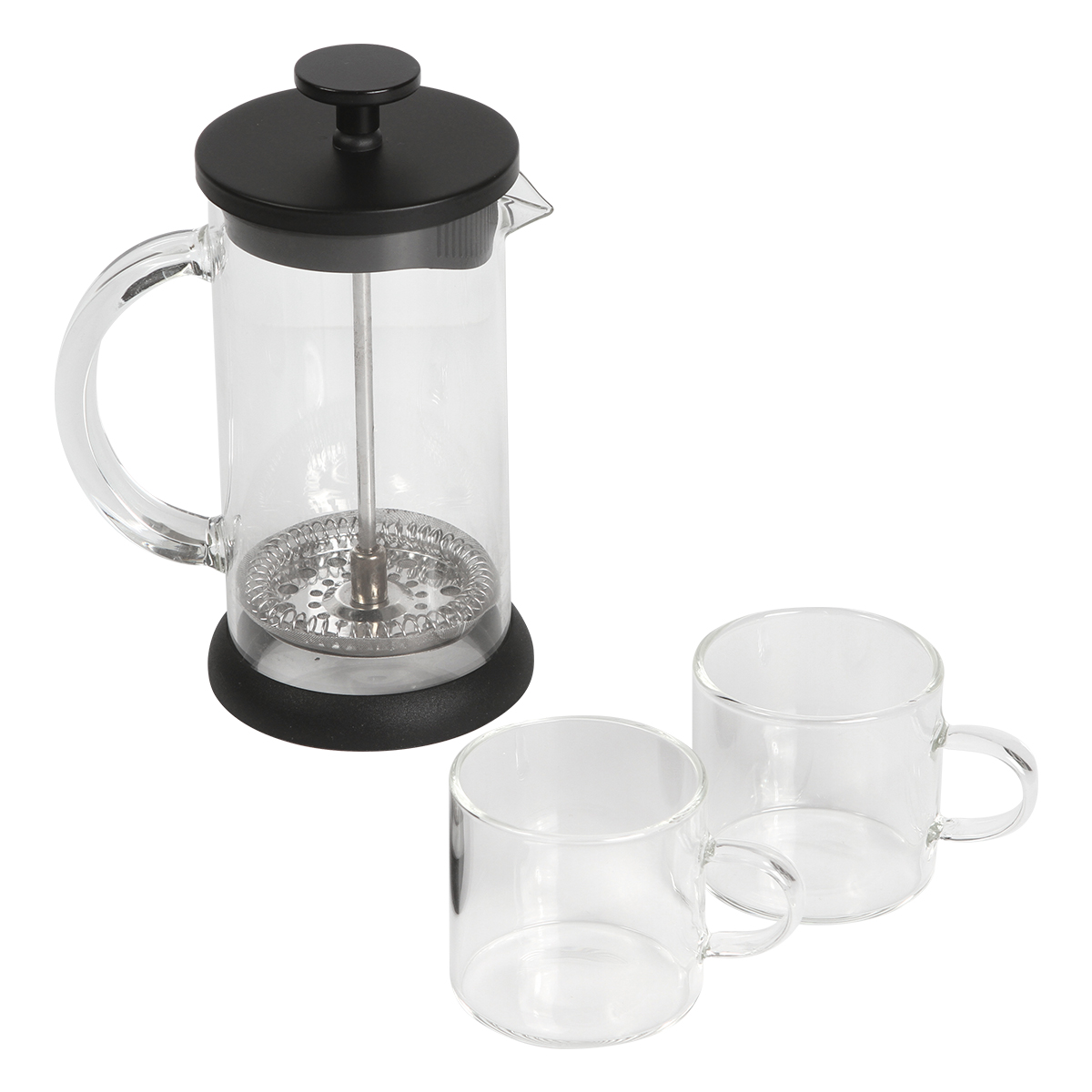 Juego de mini prensa francesa con 2 tazas de cristal, fabricado en vidrio de borosilicato, con tapa de acero inoxidable y plástico, émbolo de acero inoxidable y base de TPR, capacidad de prensa de 350 ml, tazas de 120 ml. Incluye caja de cartón por set.