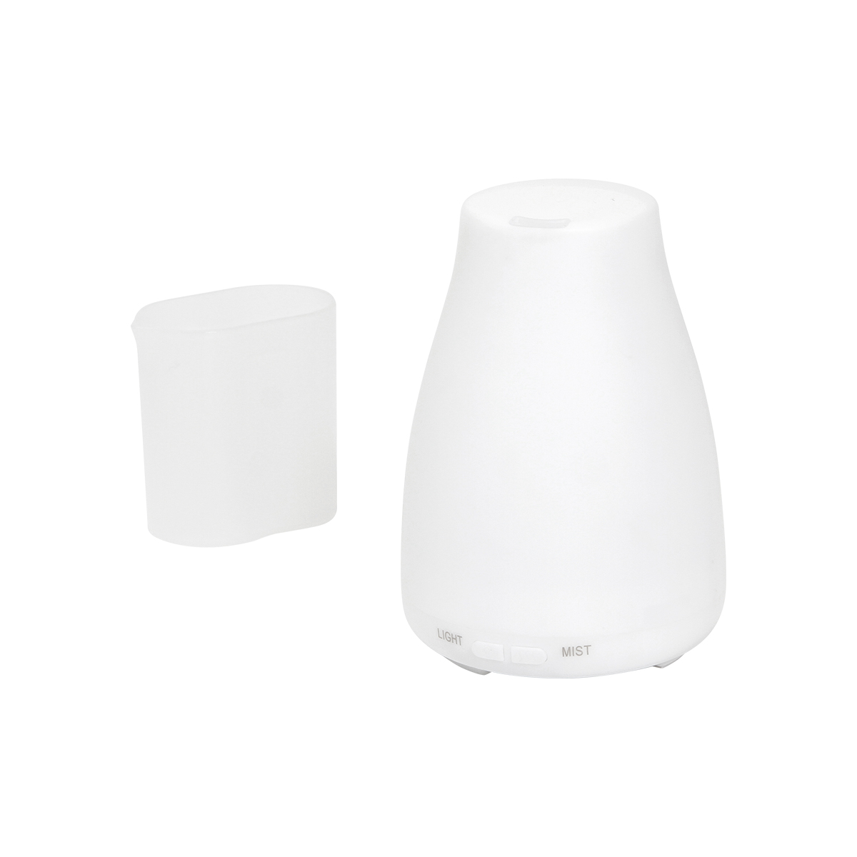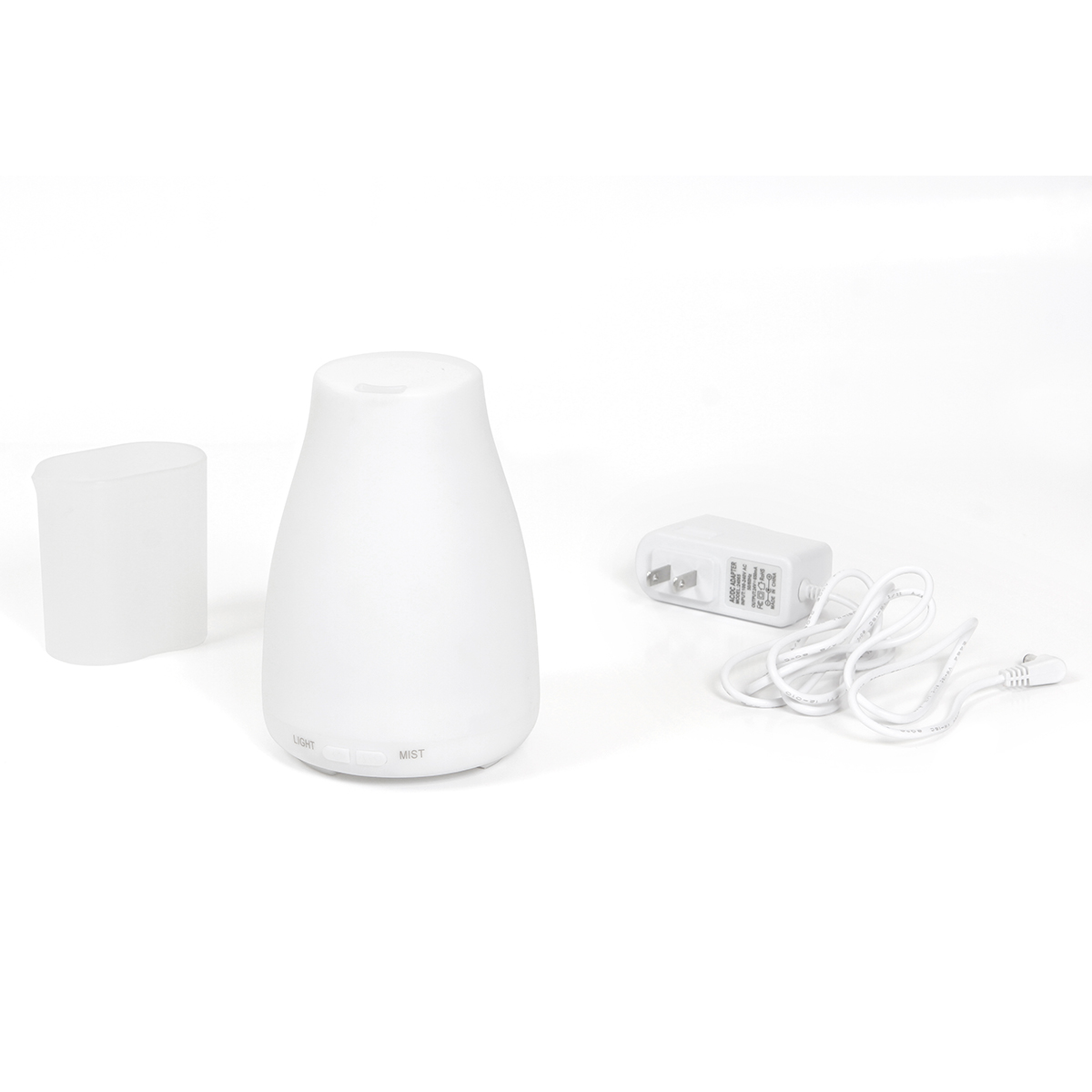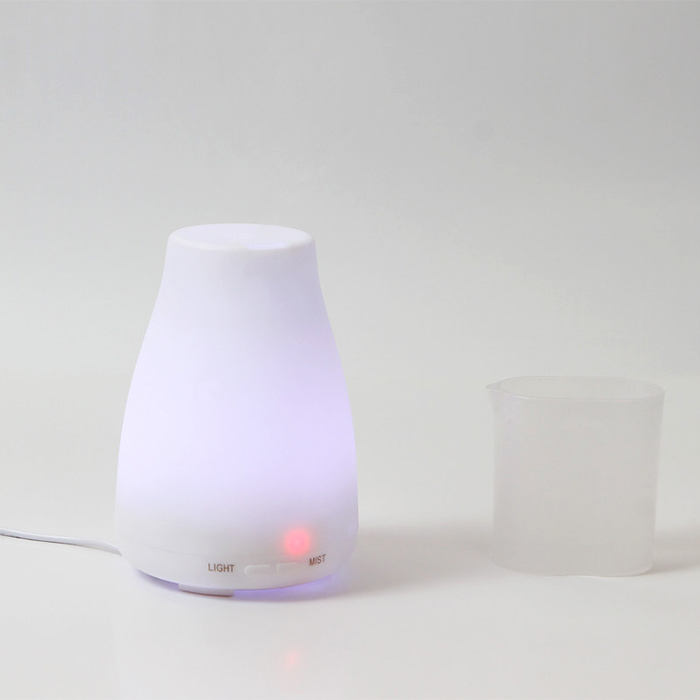 Lámpara led con difusor para aceites esenciales, 7 cambios de luz con brillo ajustable, la lámpara y el difusor pueden utilizarse por separado, carga a través de adaptador de corriente. Incluye caja de cartón individual. Capacidad de 100 ml.