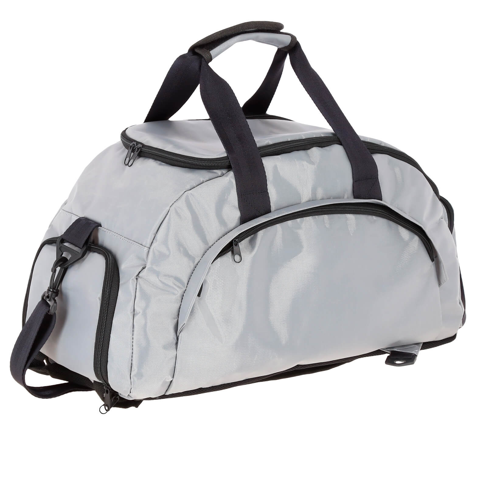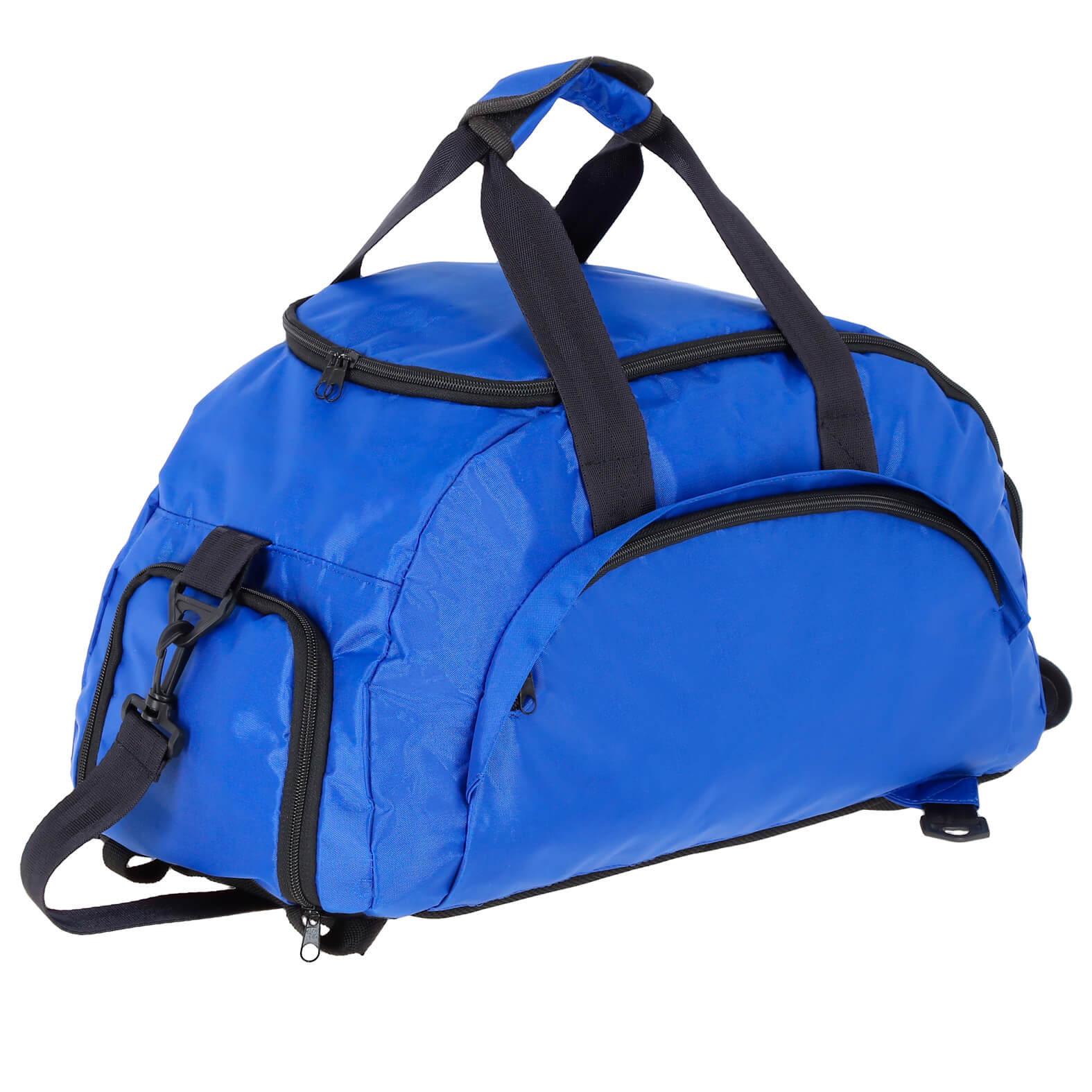 Maleta deportiva que se convierte en mochila, con 2 broches de seguridad ajustables y tirantes acolchonados. Incluye zapatera y dos compartimentos exteriores, asas y correa ajustable.