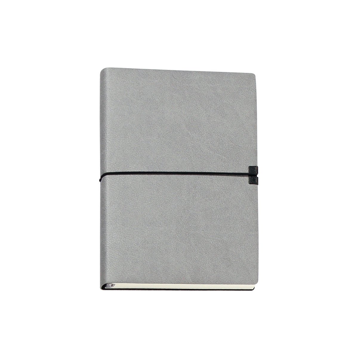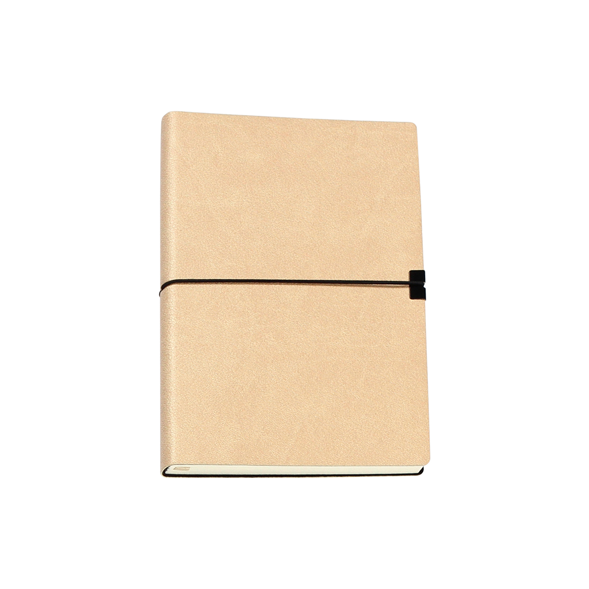 Libreta con pasta rígida fabricada en poliuretano con resorte y separador, 80 hojas de raya. Tamaño A5.
