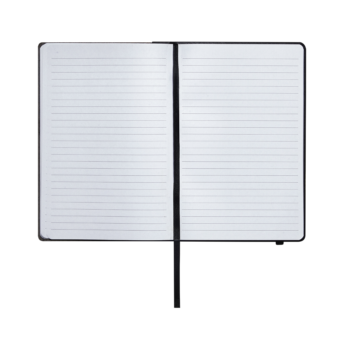 Libreta con 80 hojas de raya. Pasta con laminado de encino y base color negro que se descubre al aplicar grabado láser. Incluye separador de hojas y elástico para cerrar.
