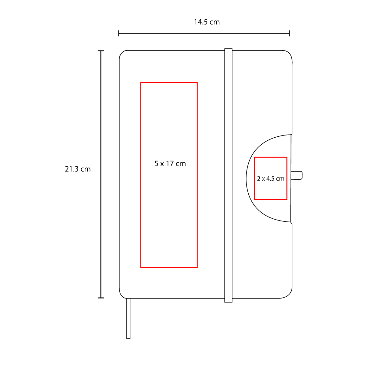 Libreta con 80 hojas de raya. Cubierta plegable para base de smartphone. Incluye elástico para cerrar, separador de hojas y elástico para bolígrafo.