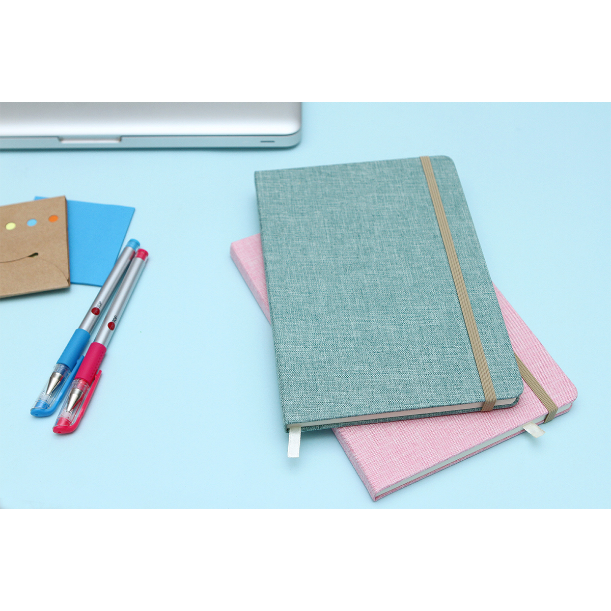 Libreta con tapa de algodón reciclado con 80 hojas (rayadas) de 70 g de papel reciclado, con resorte sujetador de pastas y separador de hojas. Esta libreta es una opción eco-amigable y práctica para tomar notas, escribir ideas o llevar un diario.