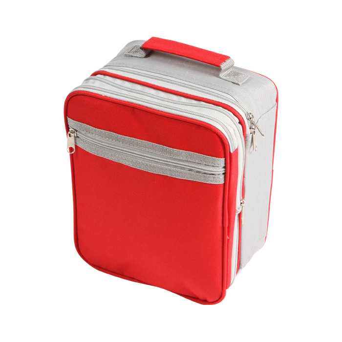 Lonchera fabricada en poliéster con forro térmico para mantener los alimentos por un largo tiempo. Cuenta con: 2 compartimentos, cierre expandible, bolsa frontal con cierre y doble asa.
