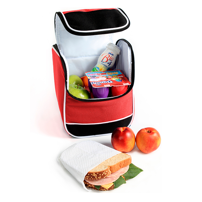 Lonchera térmica fabricada en poliéster, un material resistente y fácil de limpiar. Su diseño térmico cuenta con un forro interno de PEVA eco-friendly, tiene una asa superior resistente que te permite transportarla cómodamente.