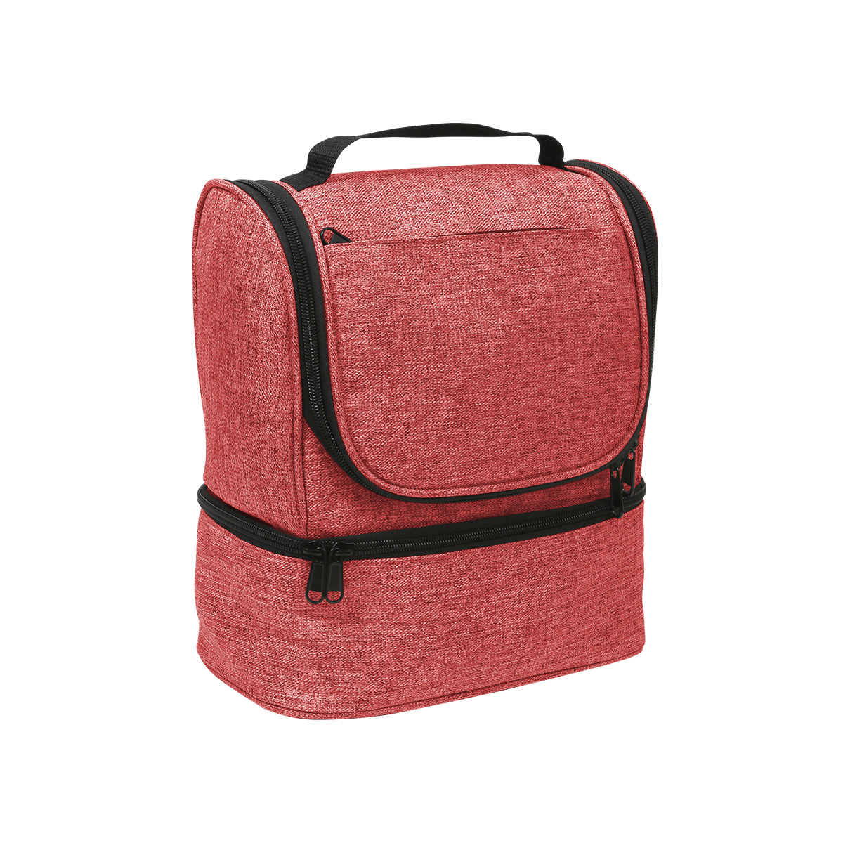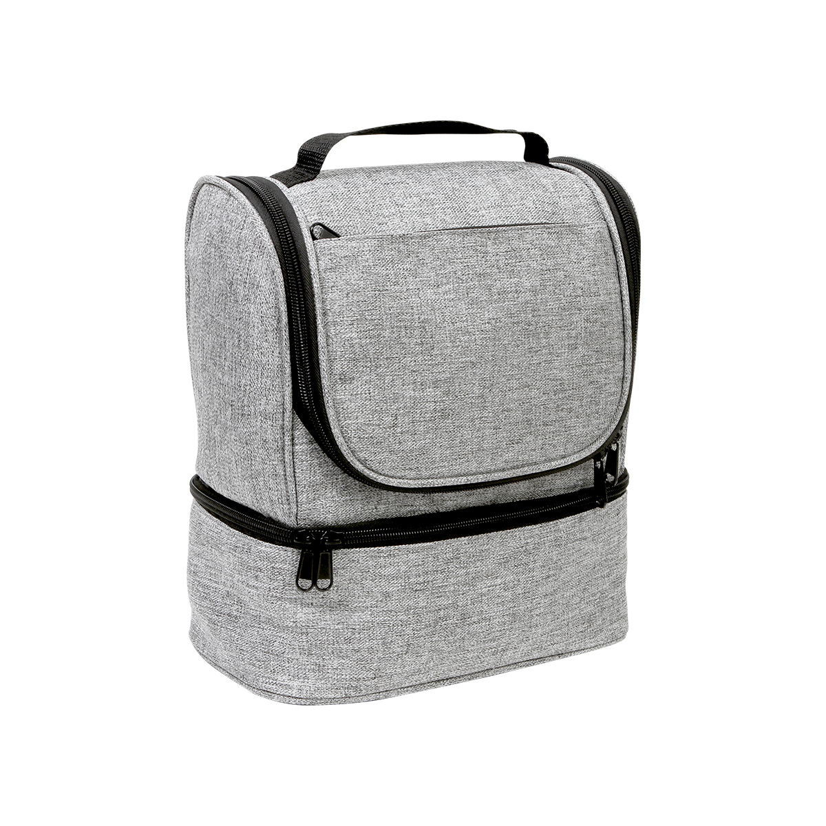 Lonchera fabricada en poliéster. Cuenta con: compartimento inferior, bolsillo frontal y asa superior.
