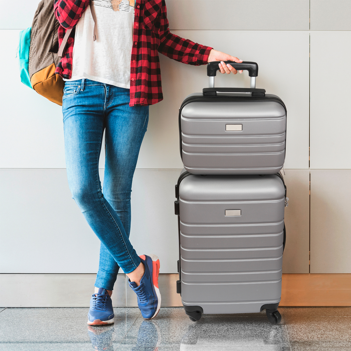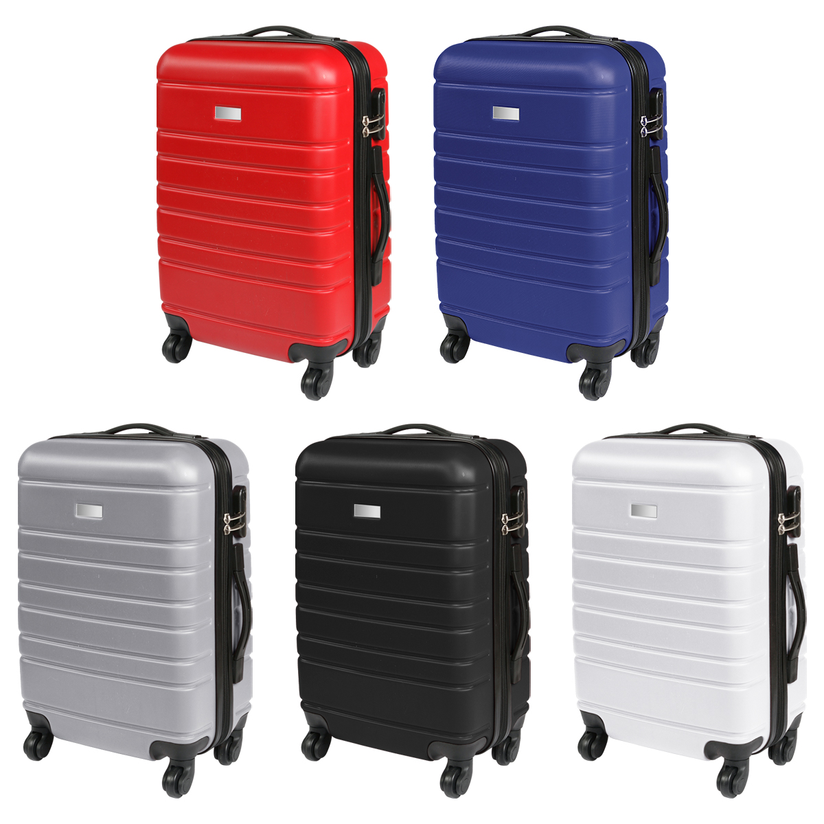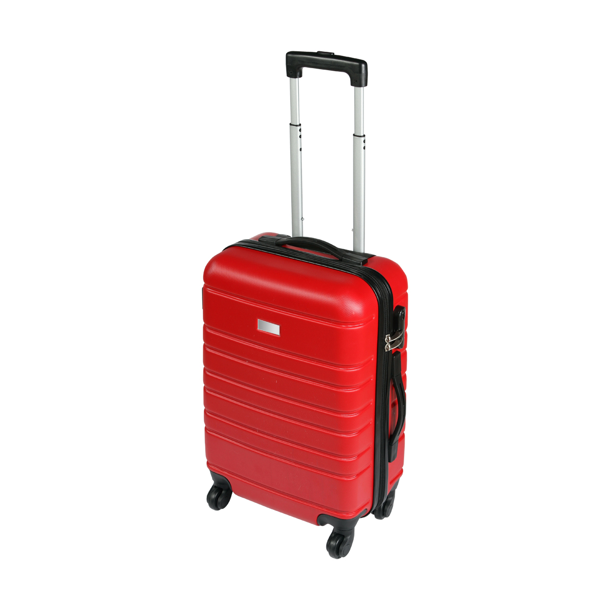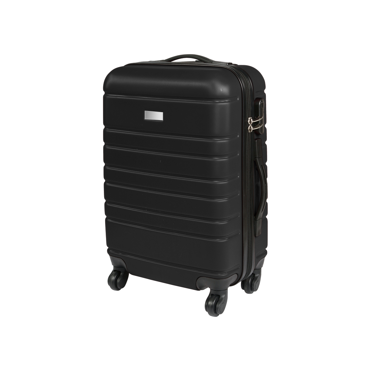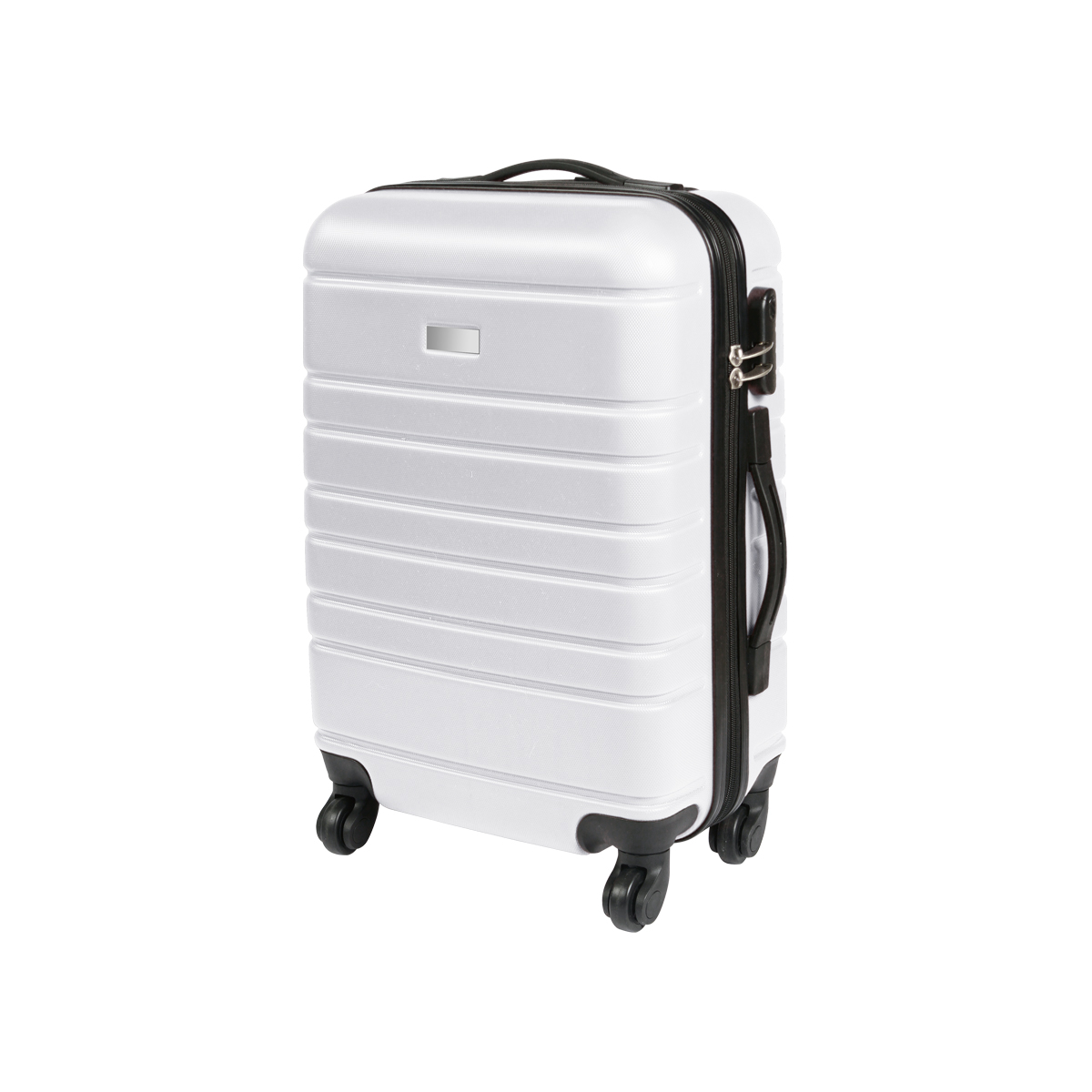 Maleta rígida de viaje con exterior fabricado en plástico ABS e interiores en poliéster, con mango retráctil de aluminio, 4 ruedas resistentes, 2 agarraderas para poder cargarla horizontal o verticalmente, chapa de seguridad con 3 dígitos de combinación y placa metálica para grabado. Capacidad de carga de 10 kg.
