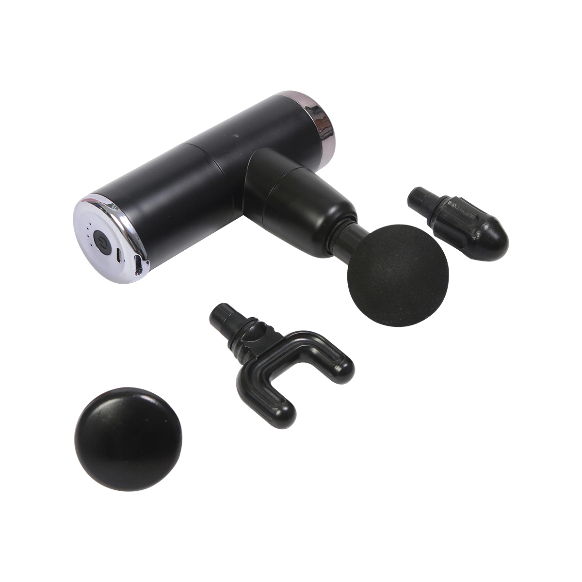 Masajeador muscular portátil con 4 cabezales intercambiables, 6 niveles de intensidad y vibración en alta frecuencia. Ideal para fomentar la relajación muscular, recuperación acelerada y alivio del dolor. Carga a través de cable USB. Incluye caja de cartón individual.