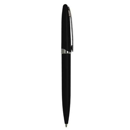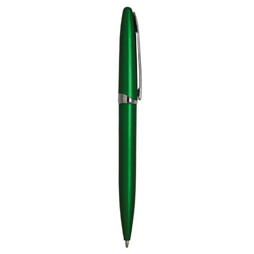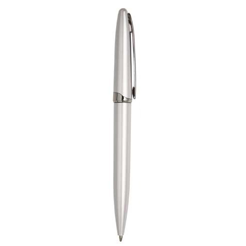Bolígrafo de plástico, mecanismo retráctil y apariencia metálica.