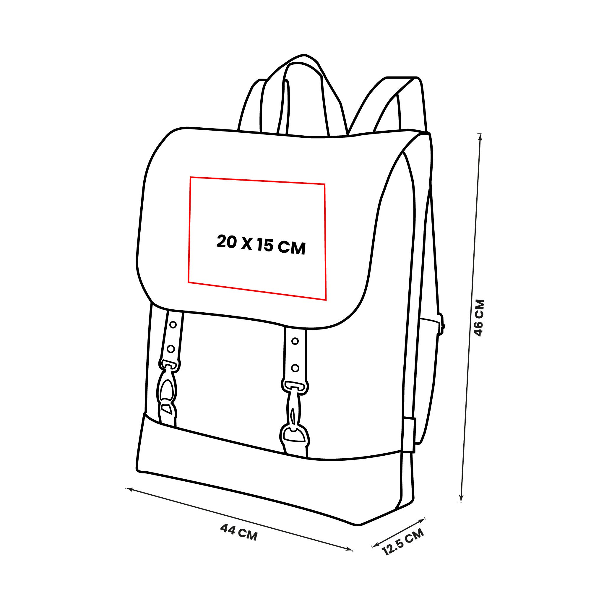 Mochila ecológica de algodón reciclado. Compartimento principal con solapa y 2 broches.
