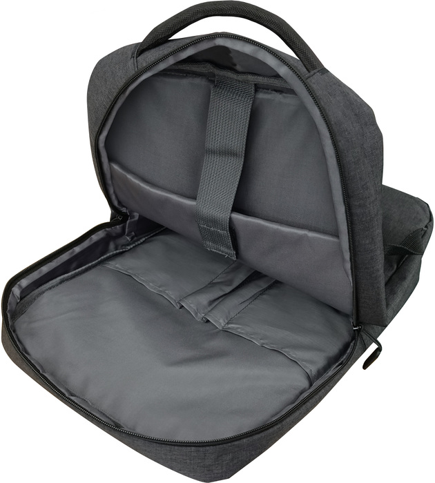 29 x 41 x 12 cm. Capacidad 14 litros. Políester 300D. Mochila portanotebook de hasta 16 pulgadas. Compartimento principal con bolsillo acojinado porta notebook y bolsillos organizadores de accesorios. Bolsillo frontal y lateral con cierre. Correas regulables y espalda acojinadas. Tiradores de cierres engomados.