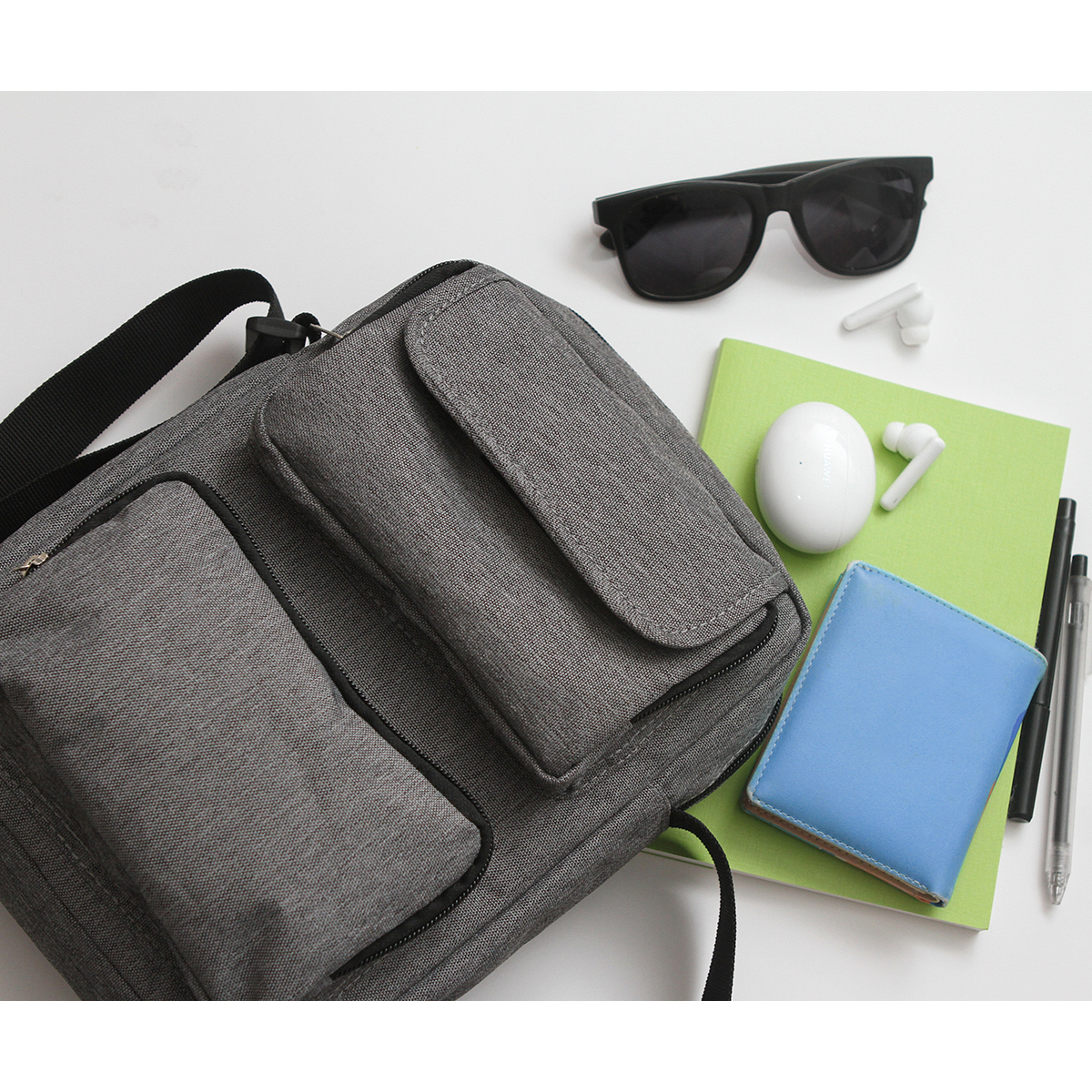 Mochila fabricada en poliéster con correa ajustable, dos bolsillos frontales y un bolsillo en la parte trasera. Es ideal para el uso diario por su práctico tamaño.