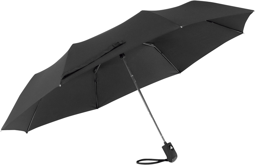 Ø 96 cm. Aprox. Polyester. Caña de metal (3 partes), varillas y puntas de metal, mango de goma y funda. APERTURA AUTOMÁTICA
