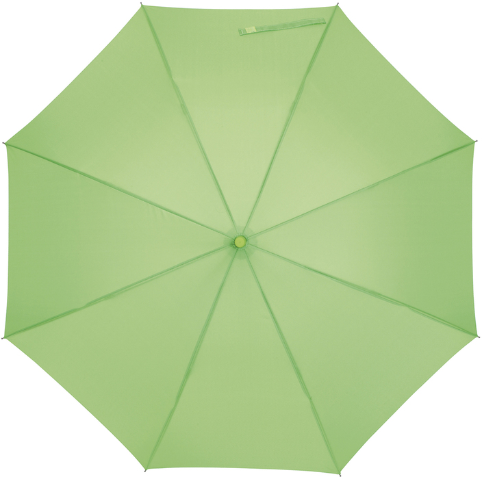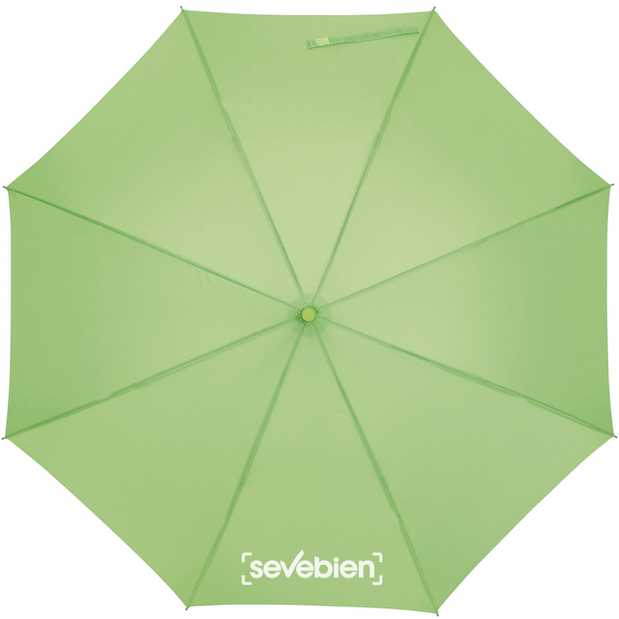 Ø103 cm. Aprox. Bastón metálico, varillas en fibra de vidrio, puntas metálicas y mango curvo de plástico. APERTURA AUTOMÁTICA. Con cierre de velcro.