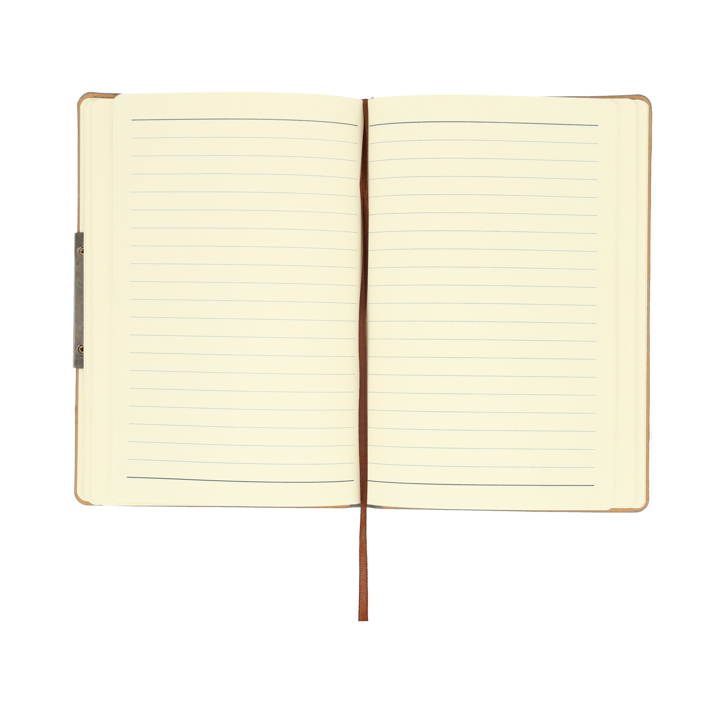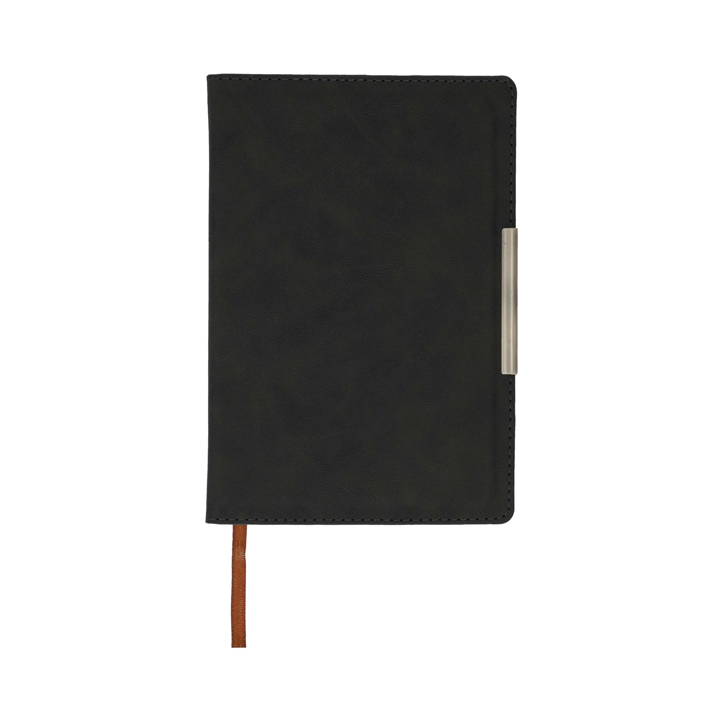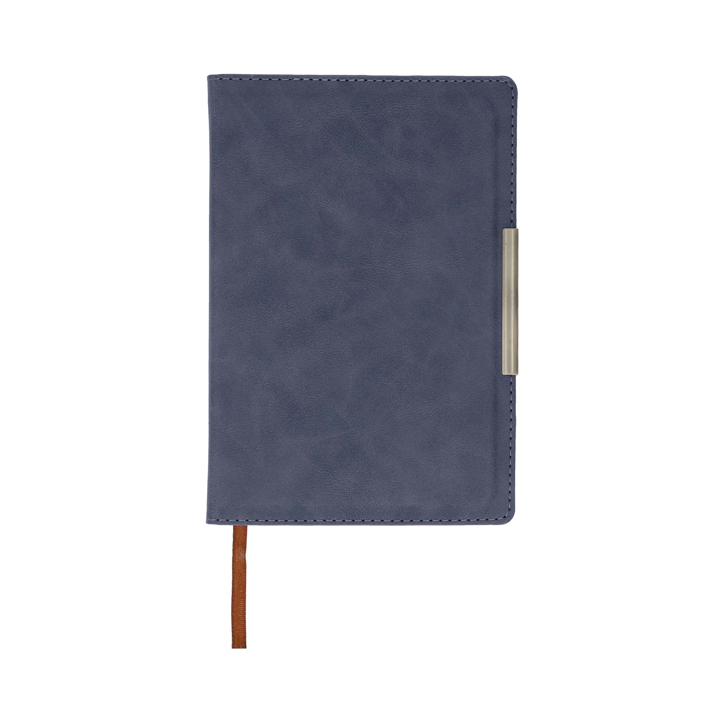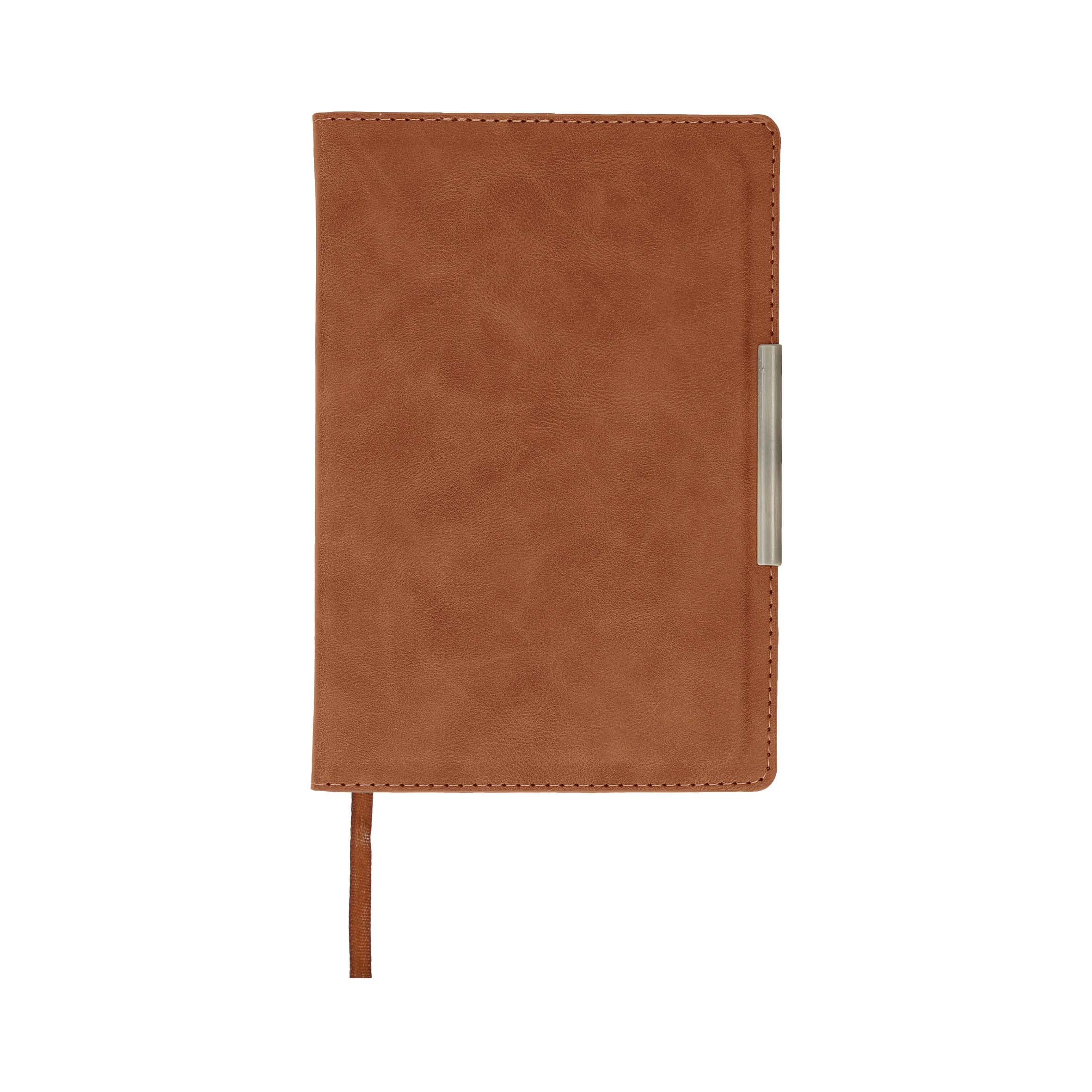 Libreta curpiel con 96 hojas rayadas, separador y filo metálico.